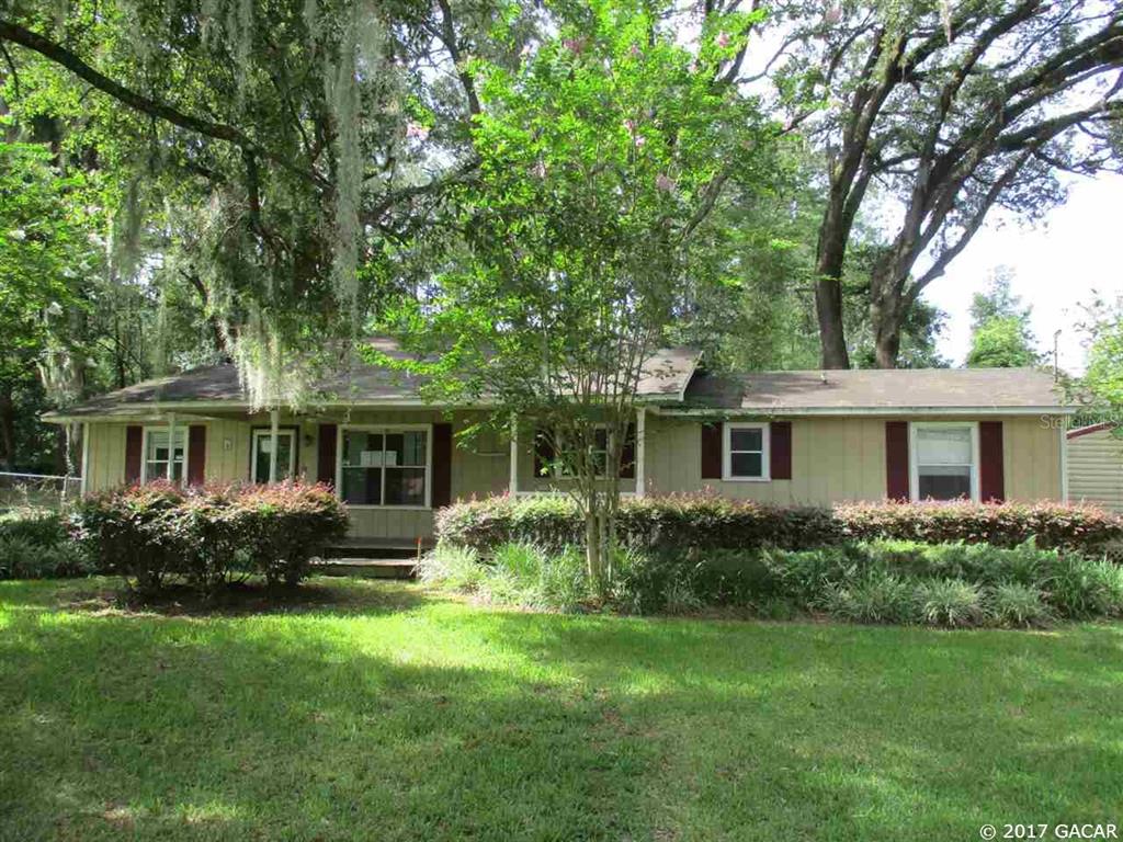 Wonderful location just south of downtown alachua off cr 235 in pilot forest. half acre lot with scattered trees for shade and privacy. home features 3 bedrooms and 2 baths with a split bedroom plan. open kitchen to living room floor plan. french doors lead to family room with corner wood burning fireplace. enclosed back porch opens onto wood deck in fenced back yard. also two storage buildings for those special belongings. you don''t want to miss this one! thanks for viewing.Single Family House 3 bedrooms - Pilot Forest
