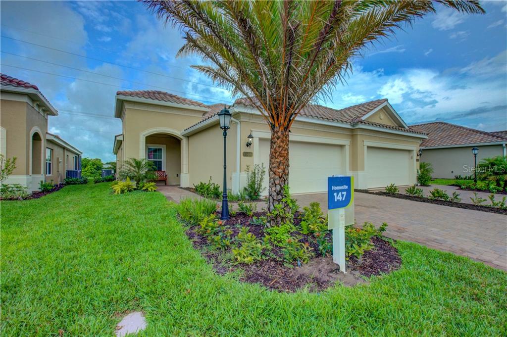 Hurricane glass front door introduces you to this beautifully appointed 2/2 plus den usgbc leed platinum villa. large porcelain tile set on the diagonal throughout, gorgeous granite counters throughout, upgraded designer cabinetry, under cabinet lighting in kitchen, additional storage in utility room., extended lanai, extended paver pad, designer mirrors, accent tile at shower walls, crown molding at foyer and great room, glass designer tile kitchen back splash, to name a few. nestled in a community that was designed to foster close knit relationships and a true sense of community. community center, which was recently enhanced with solar, features heated pool and spa, fully equipped fitness center, meeting room, summer kitchen, lounging areas around pool, pickle ball courts, fenced pet park with lounging areas to watch your pets frolic while visiting and a very very cool community garden. buyer can take $20,000 savings on any remaining home leed platinum with usbgc is the highest level of sustainability you can obtain. gated 55+ community. this is truly a home of the future today. this is the daniela floor planVilla 2 bedrooms - MIRABELLA AT VILLAGE GREEN