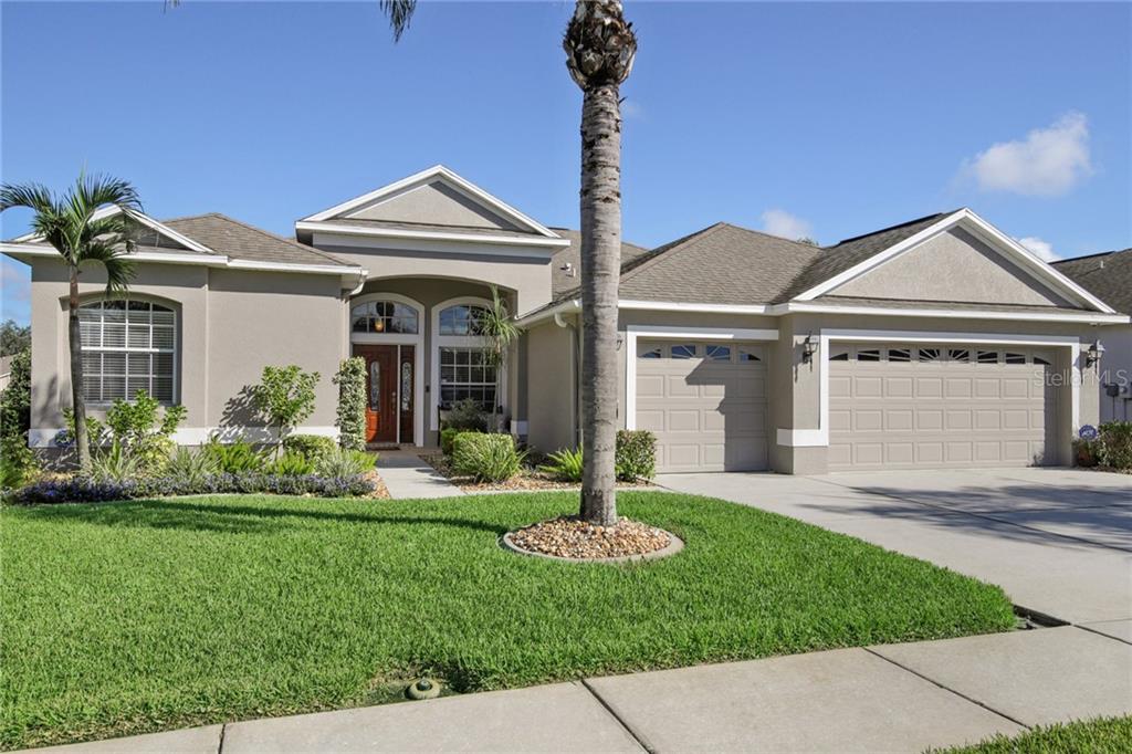 Welcome to this lovely, turnkey, newer construction home! wonderful curb appeal with meticulous landscaping, continuous curbing and an updated entry door with sidelight. step into the foyer and you will immediately be impressed with the open flow of the floor plan. separate formal & casual living areas and the always popular triple split bedroom, too. the kitchen, which features 42" maple cabinetry, solid surface tops, breakfast bar, built-in desk, recessed lighting, and stainless steel appliances, opens to the sunny breakfast nook and inviting family room. the tranquil owners retreat has a tray ceiling, walk-in closet, and indulgent en suite bathroom updated with quartz counters, wood cabinetry, soaking tub, zero entry shower with frameless enclosure, and front-lit hardwired touch mirrors. outdoors, there's a fabulous screen-enclosed heated salt system pool with spillover spa, stamped concrete lanai and pool deck, and a serene water view. additional updates include 16" glazed porcelain tile flooring, stainless steel front-load lg washer & dryer, 15 seer hvac (2017), exterior paint with 20-yr. guarantee (2015), interior paint (2018), revamped & upgraded pool equipment & heater, new stainmaster carpet in all bedrooms (2018), lifestyle retractable garage screen doors with privacy screening, ring video doorbell, hardwired security system with high-def cameras, and much more. complete list of upgrades available upon request.Single Family House 4 bedrooms - THOUSAND OAKS EAST PH 02 & 03