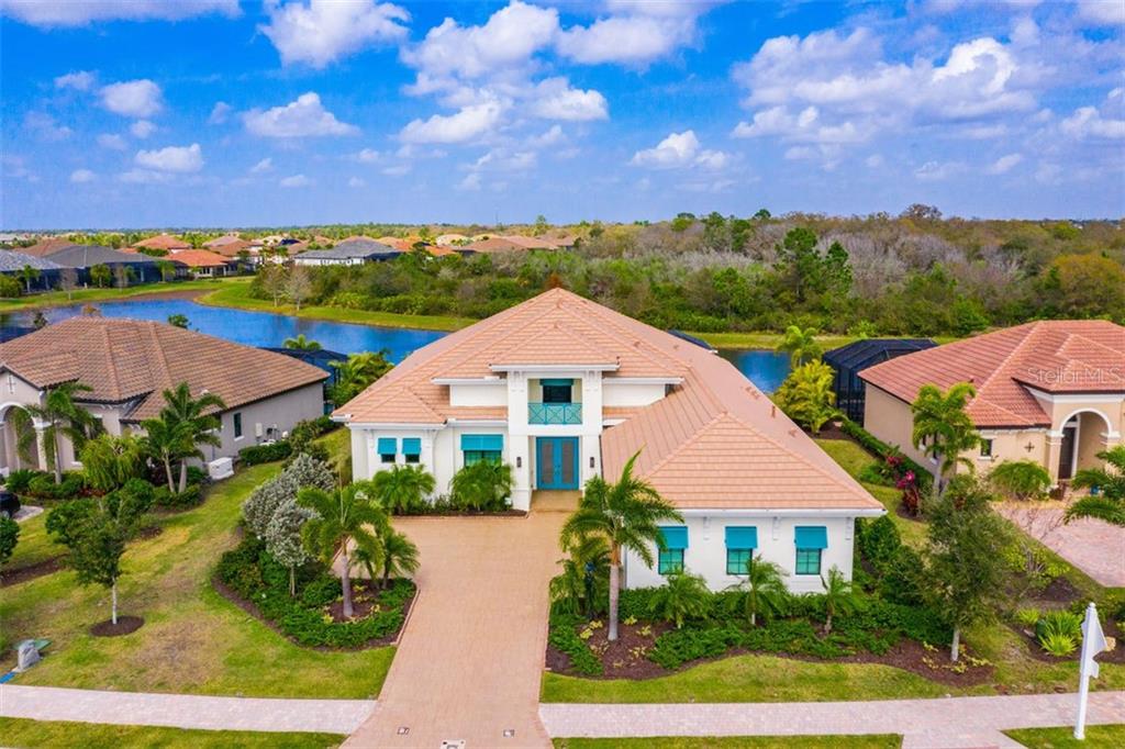 You’ll be impressed by this professionally designed former model home set on a premier lot in lakewood ranch’s country club east. enjoy peaceful lake and preserve views and the privacy of no other homes behind you. lanai is nearly 800 sq.ft. with expansive covered area, clear view screen, private pool/spa with water features and outdoor kitchen. great room floor plan has four en suite bedrooms, powder room, office, and three car garage. enjoy volume ceilings, ten-foot sliders, high-end finishes throughout, and an endless list of special features including a 220-volt electric charging station in the garage. kitchen has solid wood cabinets, pull-outs, over-sized island, quartz countertops, natural gas cooktop, closet pantry, built-in oven and microwave. dining area has disappearing corner sliders to lanai. master retreat offers french doors to lanai, two master closets with built-in organization, two separate vanities with pull-outs, large walk-in tiled shower with upgraded shower head, soaking tub and linen cabinets. laundry room is huge with quartz countertops, utility sink, and upper/lower cabinetry. home has upgraded security system, impact glass, and many special features. community is gated with 24-hr security and offers aquatic and fitness center for residents. country club membership is optional. close to shopping, dining, lakewood main street, the green, university town center, and downtown sarasota. minutes to i-75, beaches, great schools and medical facilities.Single Family House 4 bedrooms - COUNTRY CLUB EAST AT LAKEWOOD RANCH SUBP