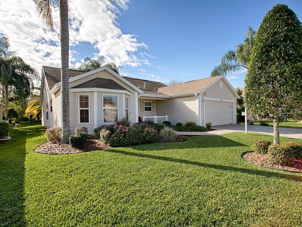 Welcome home to this beautiful designer cypress located in a perfect spot...close to lake sumter landing & brownwood, seabreeze regional recreation center and lake miona regional recreation center plus shopping on 466 & 466a. upon stepping into the entryway, you will be amazed at the spaciousness of the home. the 1878 square foot home is beautifully maintained with laminate flooring and vinyl tile throughout. the large eat-in kitchen has a french door refrigerator and a gas stove for the cook. there is a tiled back splash and the cabinets have pullout shelves. the laundry room is inside and has a laundry tub and extra cabinets and counter space. the cypress has a formal dining room, perfect for entertaining. beautiful french doors in the living room lead to the enclosed, tiled lanai. the master bedroom ensuite has 2 walk-in closets with dual sinks and shower in the bathroom. both guest bedrooms feature closets and one bedroom has a built-in desk with room for a futon or sofa bed for that extra guest. there is a slate tiled patio off the lanai that is perfect for your grill as well as a sitting area. the landscaping is lovely in the front and back of the home. did we mention that this home is also on a quiet cul-de-sac? wait! did we mention hvav replaced 2018, tankless water heater and whole house air cleaner! great location, great home!Single Family House 3 bedrooms - THE VILLAGES