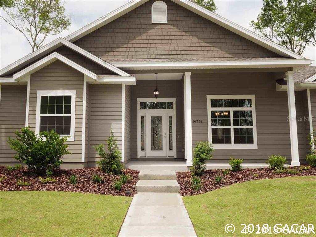 Located only a ¼ mile off of i-75 and just 8 mins from 39th ave. (uf health & santé fe college), 11 mins to newberry rd. (oaks mall & north fl regional hospital), 14 mins to archer rd. (shands, uf health, va hospital, butler plaza & celebration point) is the duration builders 4 bedroom, 3 bath, jacob model home sitting an oversized lot in the craftsman style front porch community of “heritage oaks” in alachua, fl. the home comes standard with a spacious back porch off the master and dining area, guest suite, luxury vinyl plank flooring, granite counter tops, ss appliances, 10’ and 12’ foot ceilings w /crown molding and our standard energy efficient features all which are what most would call upgrades. all this within walking distance to the new publix, restaurants, shops and services.Single Family House 4 bedrooms - Heritage Oaks