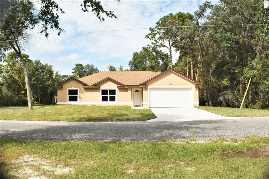 Beautiful new construction home on a lovely corner lot ready to move in. home is literally 1.9 miles from blue springs state park which feeds the st johns river! watch the manatees, kayak and swim during the summers! many upgrades. energy star windows and led lighting throughout, white shaker cabinets, granite countertops, kitchen appliances are stainless and black. upgraded ceiling fans. the 3rd bedroom has an office nook with power and telephone outlet. the living room has an electric outlet for a mounted tv. stucco on all sides of the home. backporch can easily be screened in. new sod has been laid on top of black dirt throughout the yard to help it flourish. lots to love about this home.Single Family House 3 bedrooms - WEST HIGHLANDS