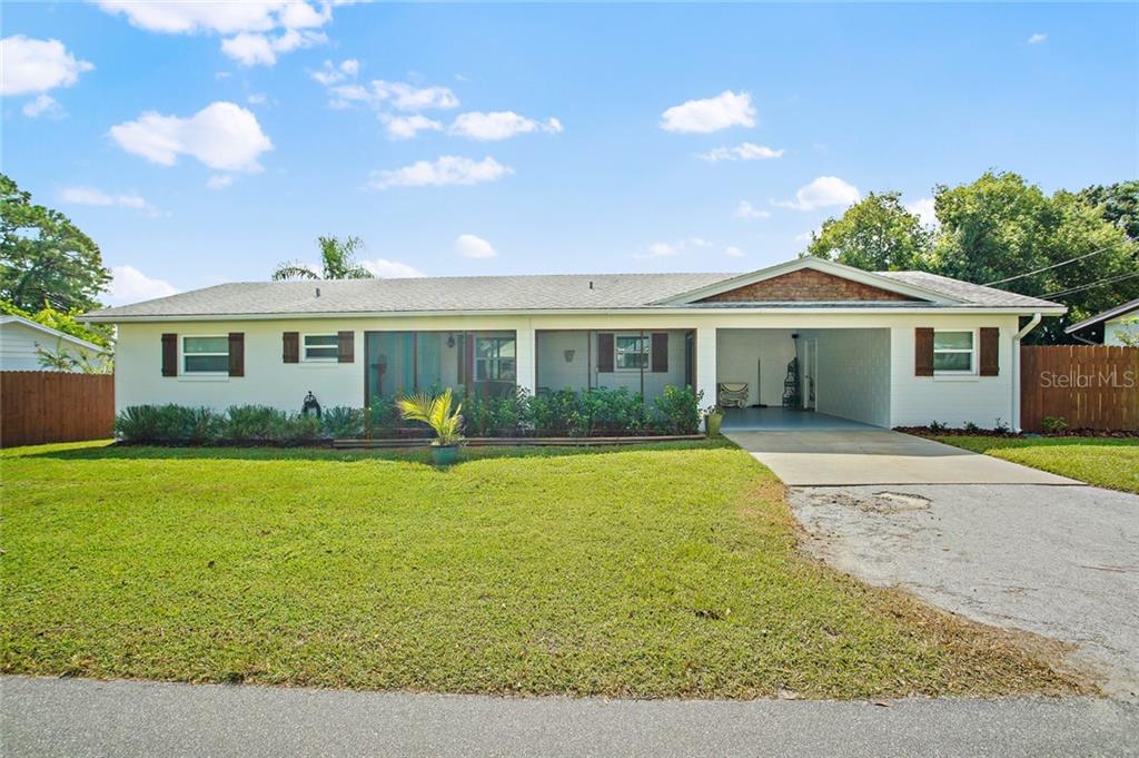 ***reduced** amazing lakefront property. sit back and relax in this beautifully renovated lake home in the three lakes subdivision of dona vista. this 1961 home was meticulously renovated to capture its original character with stunning oak hardwood floors throughout. enjoy watching the wildlife out your large picture windows in the living room and office that stream natural light and overlook your amazing lakefront property. upgrades include newer hvac system with new duct work 2017, all new energy efficient double pane low e windows 2017, stainless steel appliance package 2017, and sleek granite and quartz countertops in kitchen and bathrooms 2017. sit in your screened gazebo and watch the wildlife, zero scape landscaping in the backyard 2018, additional details such as a barn door, crown molding, subway tile and cedar shutters and facing give this home a cozy feeling. the current office has been turned into a third bedroom with a large closet off the bathroom, very functional makes a great guest bedroom or can still remain an office or a den. the carport is such that it can be made into a closed garage. all this and more. you are 10 minutes from downtown eustis, tavares or mt dora where you can enjoy shopping and fabulous restaurants. if lakefront living is what you are looking for then this is your home.Single Family House 3 bedrooms - THREE LAKES SUB