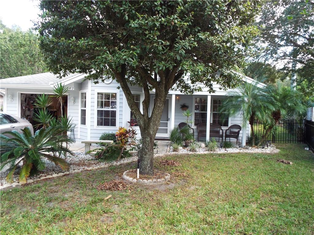 This cozy home located in a tucked away area but still close to everything as it's a minute away from 441 or 5th ave to take you where you need to go. it features a nice secluded yard with a front porch and benches located in the front and back to enjoy the birds and breeze. the living room greets you as you walk in to the open space with a large window and high ceilings. the home has 2 bedrooms with two full baths found on either side of the home being nice and private. there is a bay window on the front that has the breakfast area with lots of light next to the kitchen with oak cabinets, granite tops and a closet pantry for extra storage. the dining area is in the middle of it all bring everyone together for meals. out the sliding glass doors you'll find a large screened lanai and even a concrete patio for the grill and lying in the sun. your private back yard is your own oasis to enjoy with this one. there is a 1 car garage with the laundry here and plenty of driveway space that is long and wide for your cars. come and take a look at this one before it's gone !!Single Family House 2 bedrooms - MOUNT DORA DORSET MOUNT DORA PH 02