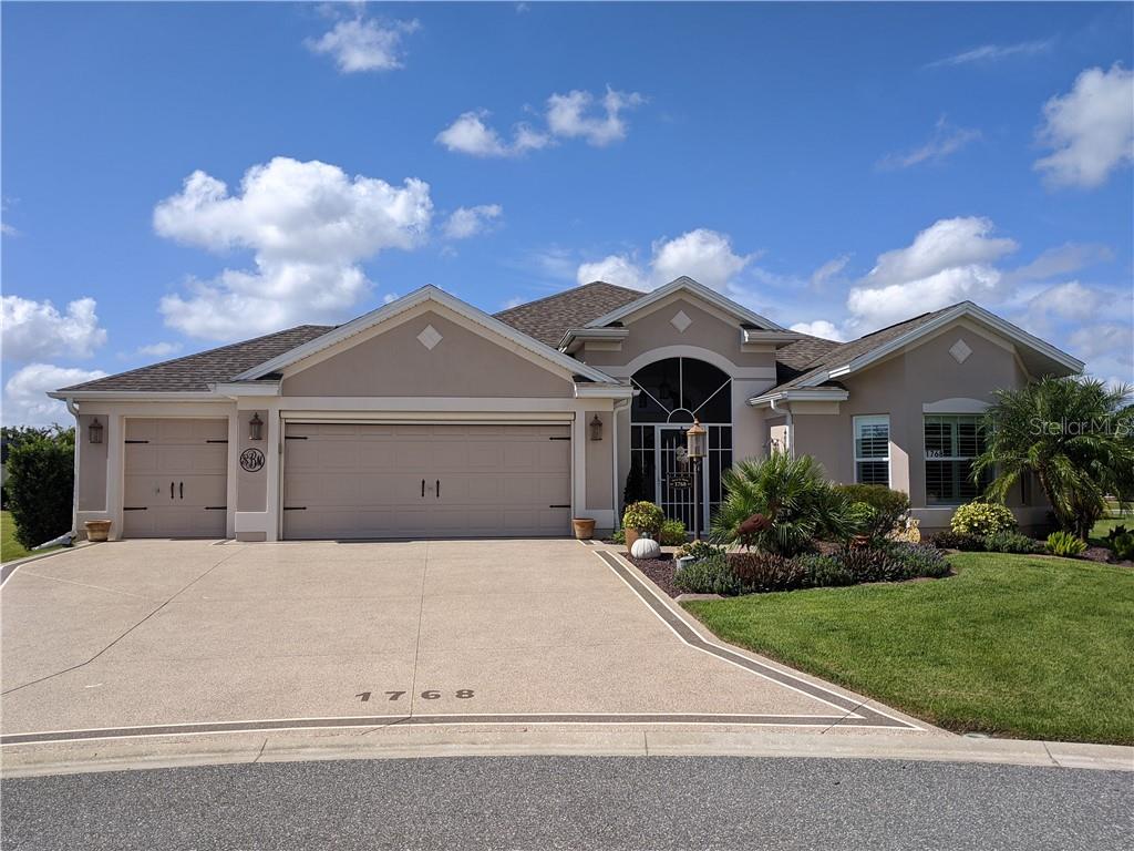 Looking for an enterainer's paradise? you just found it - in this meticulously maintained designer “lantana” with expanded 2 car + golf cart garage situated on a private cul-de-sac lot. beautiful curb appeal leads you past the artful landscape and painted driveway to the covered screen enclosed entryway. step through the beveled glass entry door to be greeted with upgrades galore from the diagonally laid tile flooring to plantation shutters to crown molding throughout with custom decorative molding around the inside entryway and doors to the lanai. the kitchen boasts maple cabinetry with a wine rack and undercabinet lighting and quartz countertops featuring a large sink in the breakfast bar. the chef’s delight will be top shelf stainless steel appliances including an induction stove and convection wall oven. the master suite amenities include laminate flooring, large walk in closet with additional shelving, double sink vanity with granite countertops and a tiled roman shower. the guest area in the front of the home offers a private hallway, 2 bedrooms and separate bathroom. entertaining your guests will be a pleasure from the main living area through the stackable sliders to the cooled / heated tiled lanai with mini split system and double pane stackable floor to ceiling sliders all the way to the huge l-shaped birdcage. possibilities are endless with this oversized .27 acre lot with no rear neighbors. there is room for a pool or home expansion. the garage has epoxy coated flooring and pull down stairs to the attic. heated area includes the 348 sq ft heated & cooled lanai. no carpet! taxes line reflects county taxes of $3381.47 & fire district of $124. annual cdd fee consist of $592.32 (maintenance ) & $1,744.10 (bond payment)Single Family House 3 bedrooms - VILLAGES/SUMTER