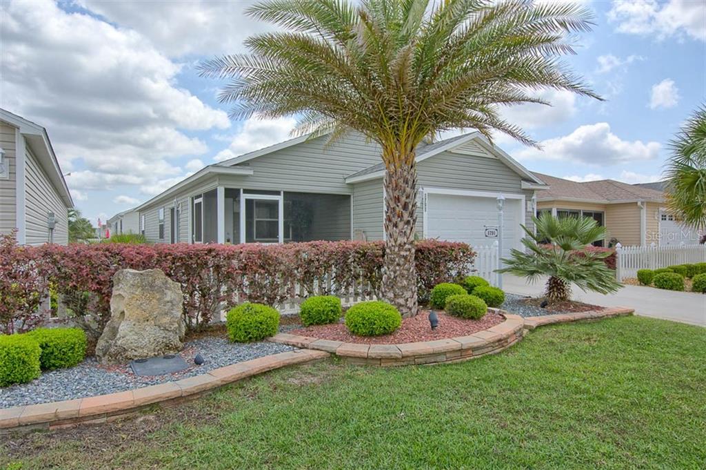 Wow! a beautifully furnished/turnkey 2 bedroom, 2 bath colony patio villa in the village of buttonwood! everything you want in a villa can be found in this lovely home including a gas, yamaha golf cart! volume ceilings create a spacious feel throughout the home. the furnishings are perfectly coordinated, including window treatments and numerous decorative items. there are granite counters in the kitchen and both baths! the kitchen has a stainless double sink, upgraded honey maple cabinets with pull-outs, a convenient eat-in area, a closet pantry, and an easy-care, wood-look vinyl flooring! the open concept living area is light and bright with neutral carpeting and beautiful decor. the master bedroom offers a king-size bed, neutral flooring, and access to the master bath with a glass door shower and upgraded vanity with granite counter. the guest room provides a comfortable space for guests! the home's considerable curb appeal is enhanced with beautiful stacked stone planting beds, filled with mature, tropical plants! the driveway, walkway, patio and lanai are upgraded with a neutral decorative surface! this is a lovely, well- appointed, barely lived-in home, equipped with everything needed to enjoy a fun and active lifestyle in the villages!Villa 2 bedrooms - THE VILLAGES