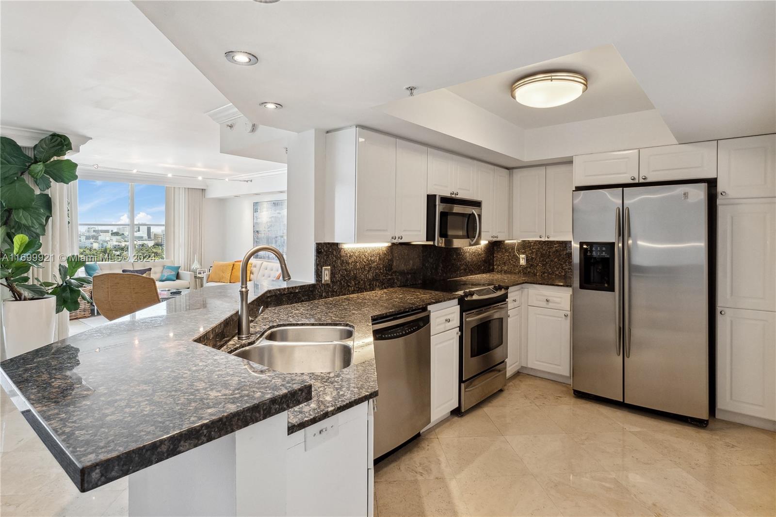Spacious 07 line unit, originally a 3 bedroom 2.5 bathroom converted into a 2 bed, 2 bath w/ large living + dining area + open den, perfect for entertaining or a home office. features include marble floors throughout, open kitchen w/ granite counters & s/s appliances. primary bath features separate shower and jacuzzi tub. 24hr concierge, 2 deeded garage parking spaces, valet parking for guests, 2 heated pools, jacuzzi, gym, sauna and upgraded community room. views of miami beach and golf course. enjoy everything sunset harbour has to offer right on your front door step.1800 SUNSET HARBOUR DR #1607, MIAMI BEACH, FL 33139
