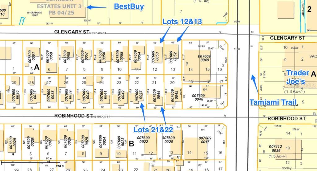 Offered for sale is a package of four vacant commercial lots zoned commercial general (cg) located on 1916 & 1910 glengary street and 1909 & 1913 robinhood street, sarasota fl. all existing structures and debris on the properties are to be razed and cleared by the sellers. the lots are each 7,050 sf for a total of 28,200 sf (.647 acres). the most efficient use of the lots would be to combine and build on the two lots on glengary and on the two lots on robinhood, resulting in two lots with 120’ of street frontage at 117.5’ deep. the glengary lots are less than a block to the signalized intersection of tamiami trail and glengary, serving trader joe’s and best buy. glengary street is utilized as entrance/exit for the bestbuy parking lot. the “cg” zoning permitted uses include reataurants, retail, package store, car wash, wholesale trade, vehicle parts, etc.Other Land - SOUTH HIGHLAND AMD OF