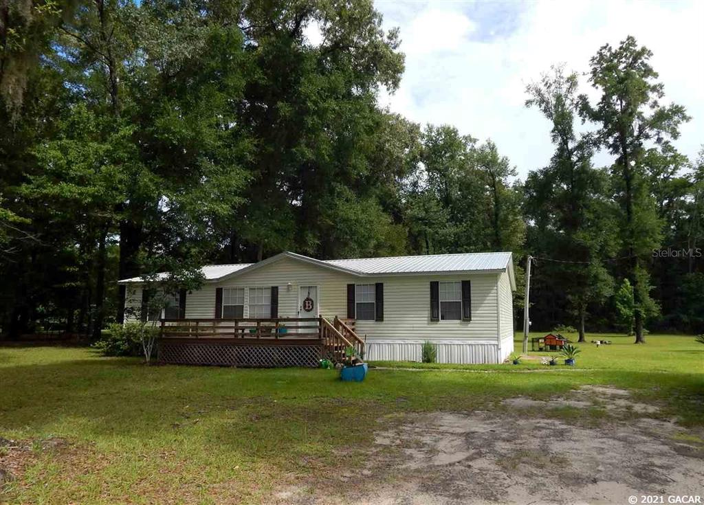 Check out this well maintained 2006 4bdrm/2bth home on 5.47 acres! split floorplan, master suite has walk-in closet, sunken tub, walk- in shower and dual vanities! nice lg. open kitchen w/island, pantry and dining area! home has nice sized bedrooms, new metal roof 2020, new well pump 2021 and a tankless hwh! come sit on the front deck and watch the deer & turkey come thru the yard! property is fully fenced and has 3 out bldgs for storage! lot is partially wooded but has plenty of room for animals and there''s a 2nd 85ft capped well on property! fruit and citrus trees also on property. great nw alachua location only minutes to shopping, santa fe river and springs! a+ schools!Manufactured Home 4 bedrooms - Not In Subdivision