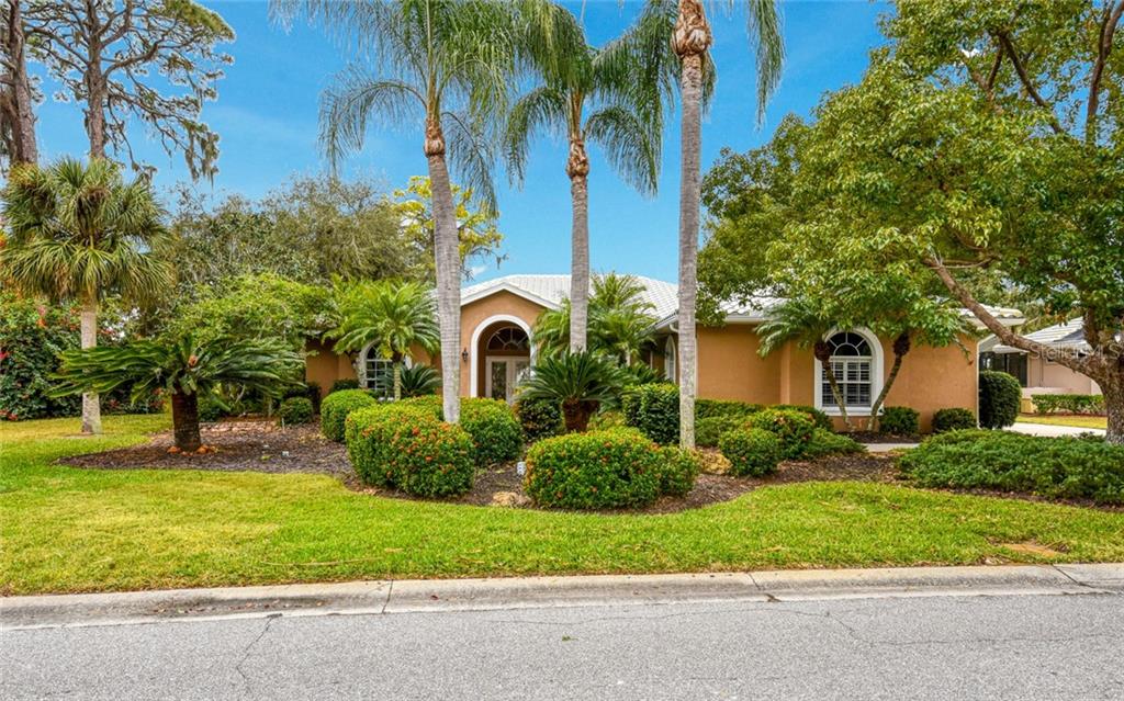 Looking for the relaxed lifestyle of the florida gulf coast? located in a gated community between sarasota and venice, this beautiful home is very welcoming with mature landscaping, handsome exterior with tile roof (2013), over-sized side load garage, and golf course views. smartly decorated inside with plantation shutters and hunter douglas blinds, the airy home is complete with high ceilings, 18" travertine tile floors in living areas and baths, and arched windows for light. perfect for entertaining, several disappearing sliding doors expand the interior space onto the large, caged lanai with a generous covered space for outdoor dining. an open, yet defined, living/dining room area flows to the combo eat-in kitchen, with stainless appliances, center island for prep, abundance of cabinets, and full wall of pantry space, and then into the adjoining spacious family room, with its cathedral ceiling and grand window. the 2 bedroom guest wing, with shared bath, is separate from the sizable master bedroom, with its 2 walk-in plus 2 extra built-in closets, and en suite bath with double sinks, shower, and soaking tub. community residents of calusa lakes enjoy low hoa fees of $219 per qt., which includes security, lawn irrigation, access to tennis and public restaurant, and optional golf club membership - all of this just minutes away from shopping, dining, arts and cultural events, boating, legacy trail, and sandy beaches!Single Family House 3 bedrooms - CALUSA LAKES