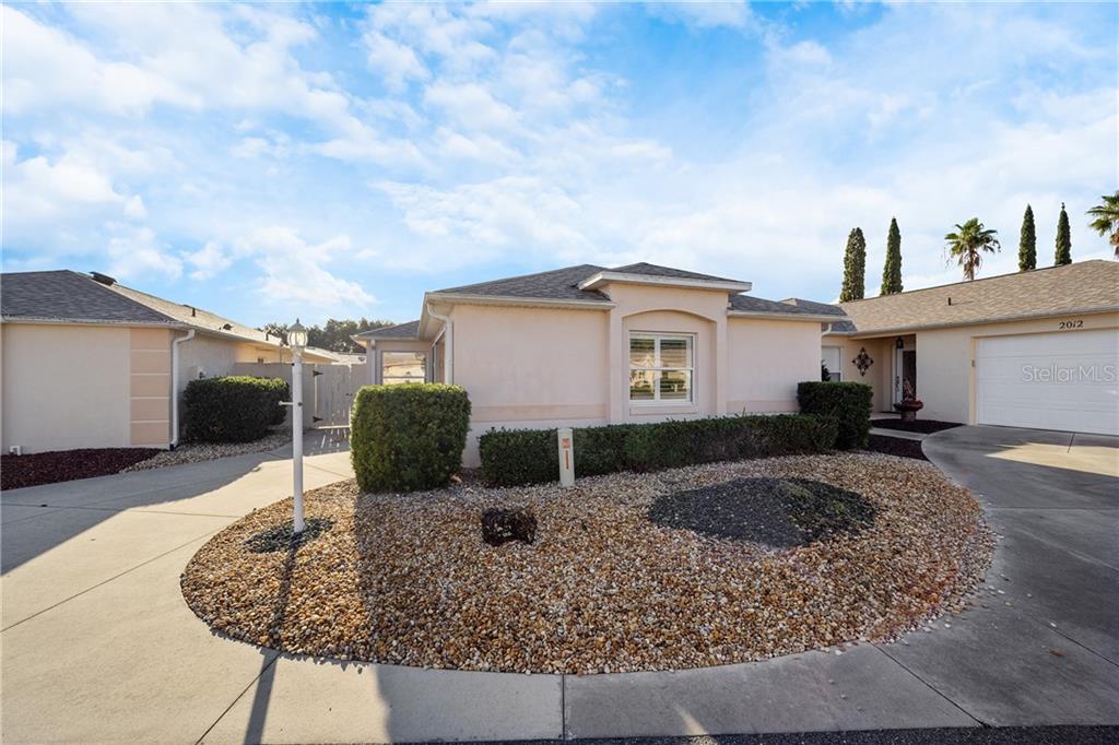 Have you been dreaming of a low maintenance florida getaway? this 2/2 courtyard villa in the villages, less than 3 miles from the spanish springs town center may be just what you've been looking for. there is no grass to mow, and the enclosed lanai looks onto the private courtyard with pavers. it has tile throughout the main living area, kitchen, and bathrooms, and carpet in the bedrooms. the master bedroom has a huge closet, and an ensuite bathroom with walk-in shower. the high ceilings in the dining and living area make the space feel open. it is located in the village of santo domingo in the villas de la ramona, close to golf, tennis, pickleball, and the list goes on and on. there are also thousands of clubs in the villages, and you will only be bored if you choose to be. don't put off finally living the villages lifestyle. call today for a private showing.Villa 2 bedrooms - VILLAGES OF SUMTER VILLA DE LA RAMONA