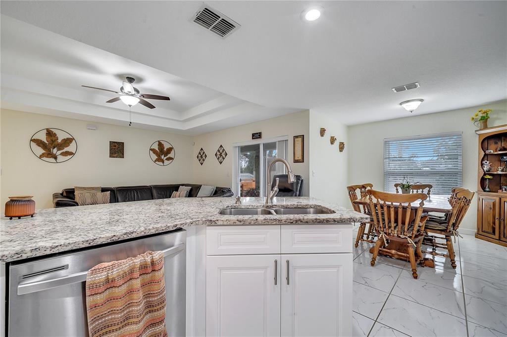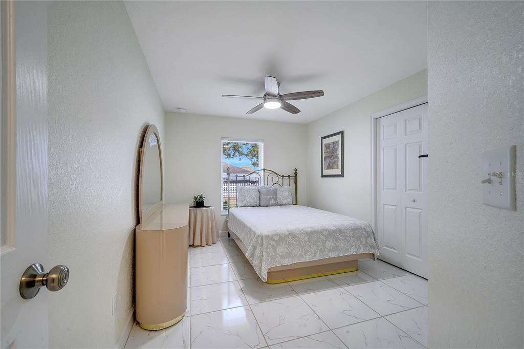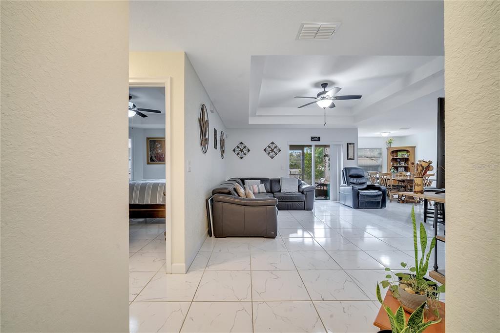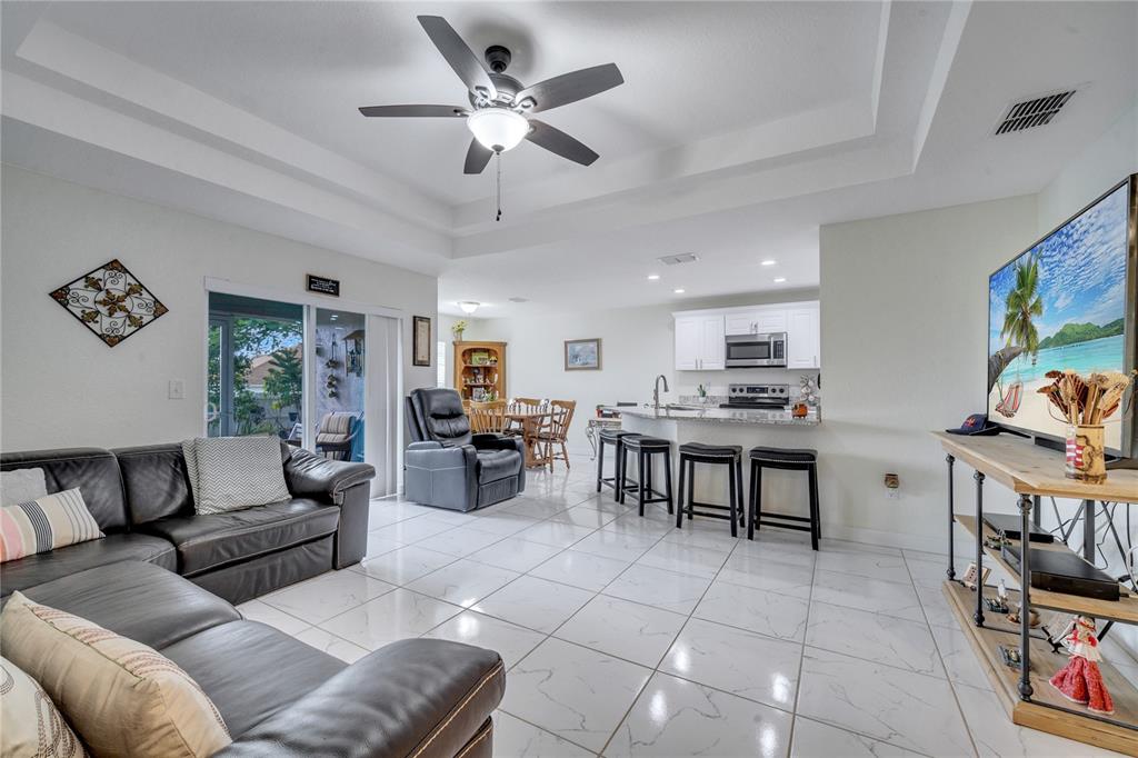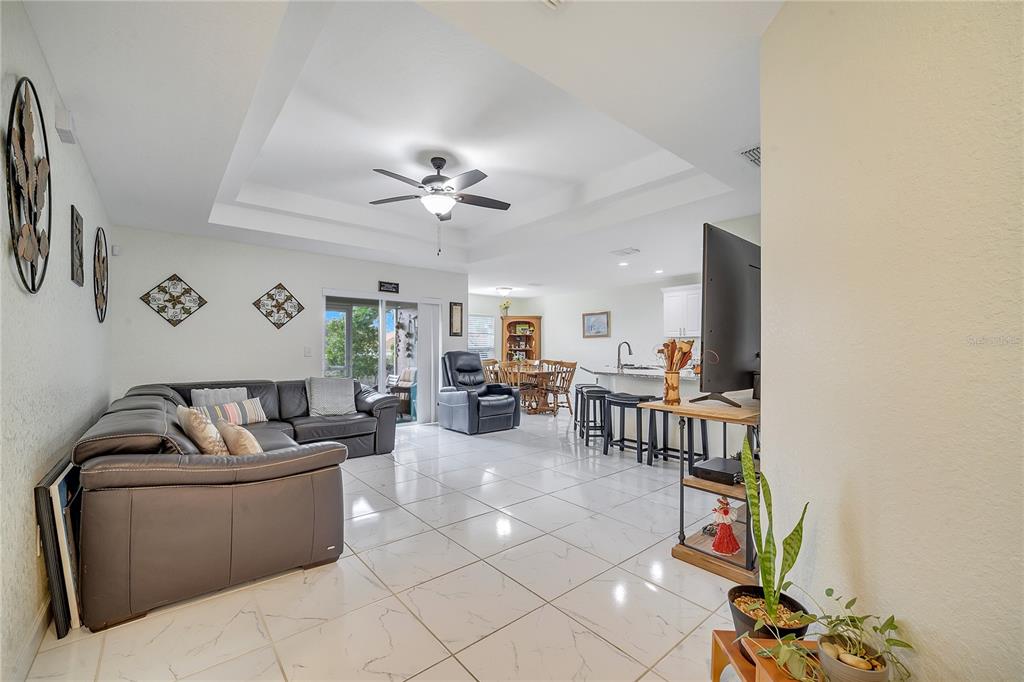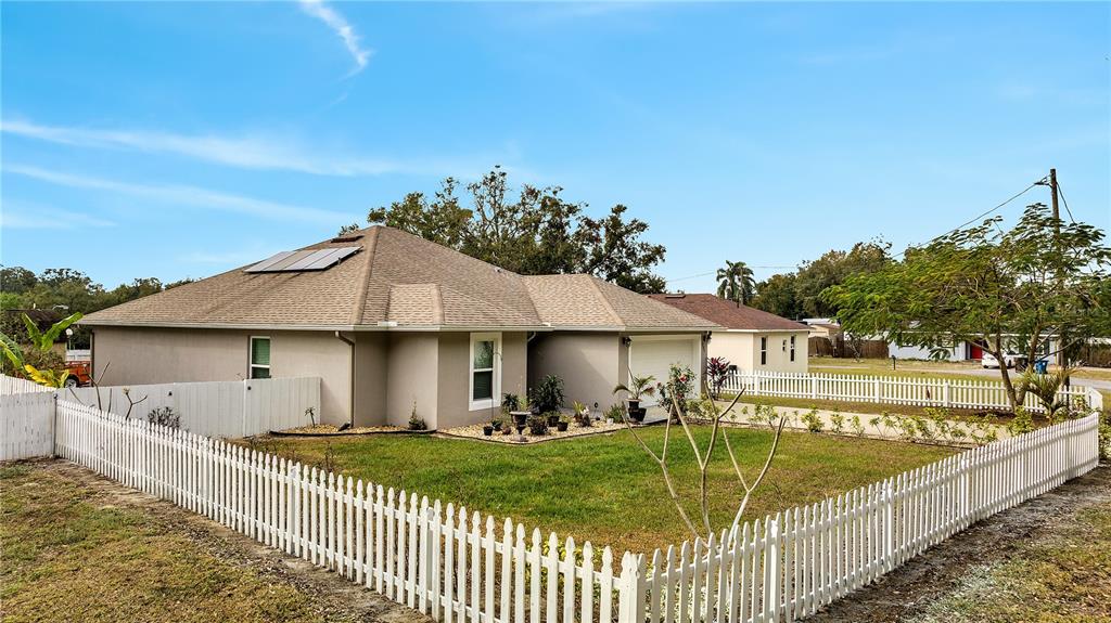 Meticulously maintained 3 bedrooms 2 bathrooms home. no hoa and no cdd!!! this 1/4-acre lot is a rare find and even better it’s located off a quiet street with only a few homes. home was purchased brand new in 2019 and looks just as new as it looked back then. one of the highlights of this home is the master bathroom. it has a huge stand-up shower, toilet room, walk in closet, dual vanities and very spacious. open concept floor plan- the kitchen opens up to the family room and dining room. the living room includes a vaulted ceiling which gives it an elegant look. master room also has a vaulted ceiling. ceramic tiles throughout the home. the sliding doors opens to rear patio. huge yard space at the rear and the two sides of the home. septic is located in front of the property. the 8 x 12 shed has been wired for electric. gutters installed around the entire home. termite protection until december 2025. solar panel is leased for $111 monthly. you definitely don't want to miss owning this home in heart of davenport yet away from the busyness.Single Family House 3 bedrooms - DAVENPORT RESUB
