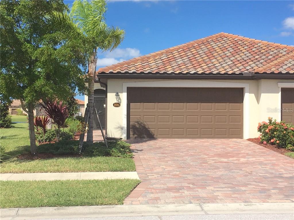 Looking for a paired villa with extra storage and a gorgeous water view? the extended lanai's southern exposure provides a lovely sunset to enjoy tropical cocktails. inside, your paradise retreat offers porcelain tiles in the public areas, and neutral carpet in the 2 bedrooms and den. not 1, but 2 sliding glass doors onto the screened lanai. both sliders have custom-installed vertical shades, while the master bedroom also has custom shades on the double windows. owner upgraded both bathrooms with granite counter tops and added a built-in cabinet over the master bathroom commode for extra storage. more storage was added with the built-in utility closet & cabinets in the laundry room; and the garage has custom-built heavy duty shelving. kitchen offers stainless steel appliances, granite counter tops & double stainless steel sinks. the breakfast bar is convenient for quick bites or entertaining! paid-up annual a/c service contract conveys to new owner. enjoy the extra-large resort pool, state-of-the-art fitness center, sauna and steam room in the locker rooms and the many activities arranged by the gran paradiso life-style director. home is ready now as owners have moved to a larger single family home in gran paradiso. do not miss the opportunity to own your oasis on the water!Villa 2 bedrooms - GRAN PARADISO