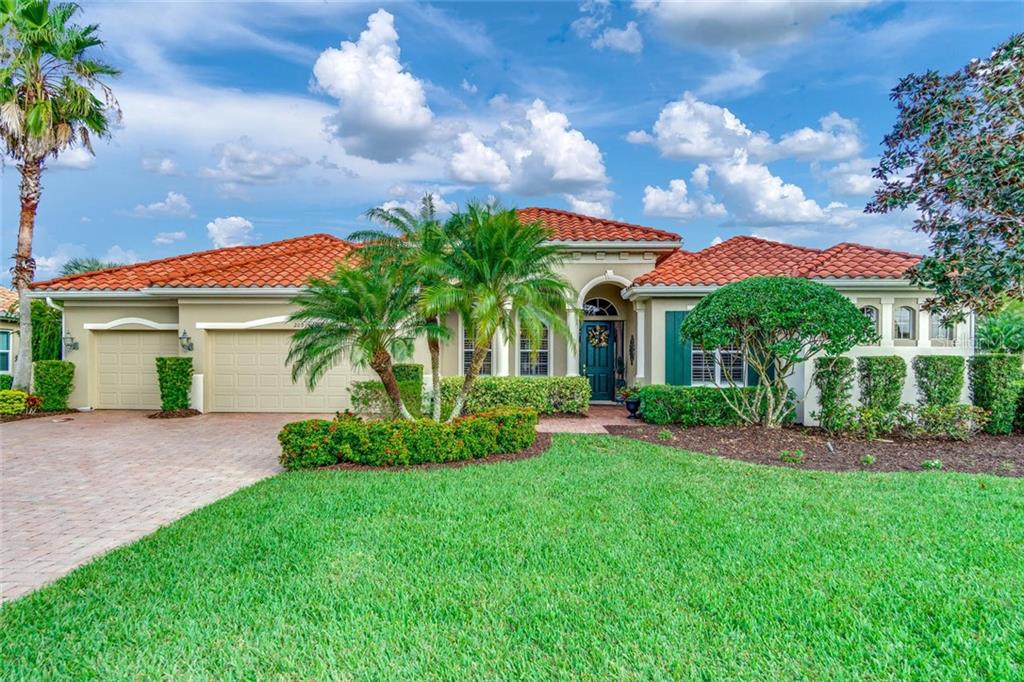 Captivating and unique home is harmonized with the warmth, style, and high-quality artistic detail of the interior of this da vinci model with four bedrooms, three-full baths, plus a den and a three-car garage. the center of the home is the open kitchen, family room, and dinette by a large aquarium window. a wonderful flowing open floor plan with formal living and dining areas. a impressive dream kitchen with granite counter space, stainless steel gas appliances, wood cabinetry, breakfast bar, center island. all with open views making entertaining a breeze. tray ceilings in the master suite and formal dining area. large master suite with a sitting area, two walk-in closets, dual sinks, garden tub & glass shower. a lanai built to entertain on; lots of space covered and uncovered areas with a saltwater pool and spa plus a full outdoor kitchen. private water views!! extras include crown molding, large tile on diagonal, carpet + wood flooring, plus a laundry room with wood cabinetry. hurricane impact glass + electric hurricane shutters. the venetian golf & river club is located in beautiful north venice, 10 minutes from the gulf beaches and shopping. the river club features exquisite dining with a scenic view of the peaceful 70 acre nature park nestled along the myakka river. full fitness center & aerobics studio, lap pool, resort style pool + cabana bar. a six-court har-tru tennis center. a legendary 18 hole championship golf course,Single Family House 4 bedrooms - VENETIAN GOLF & RIVER CLUB PHA