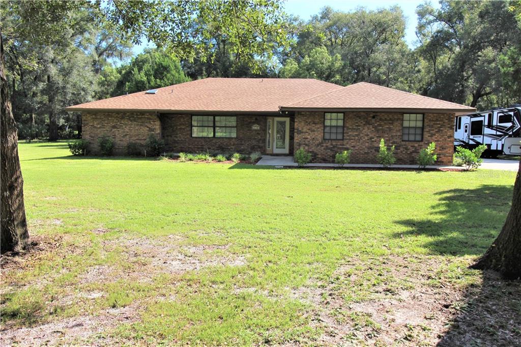 Location ! location !! beautiful brick home on 2.5 acres. 3 bedroom, 2 1/2 bath with oversized 2 car garage. enjoy the new landscaping from your open front porch or screened-in back porch. from the leaded glass entry door and foyer, straight ahead is the family room/kitchen area; or to the left is the living/ dining rooms w/vaulted ceilings. relax around the kitchen island that also serves as a breakfast bar. ample wooden cabinets in this spacious kitchen. french doors open onto screened-in back porch. stay warm and cozy in the family room with wood burning fireplace on a brick hearth. the spacious master suite has an adjoining dressing area with sink and walk-in closet; plus roomy walk-in shower and second sink. new roof, new cost saving 80 gallon hybrid hwh and new drain field , all in 2018. 2 story work shed built in 2017 with endless possibilities. wooded privacy just over a mile from publix . enjoy shopping in downtown deland or relax at blue springs state park and the st. johns river.Single Family House 3 bedrooms - COMMUNITY CENTER DEV