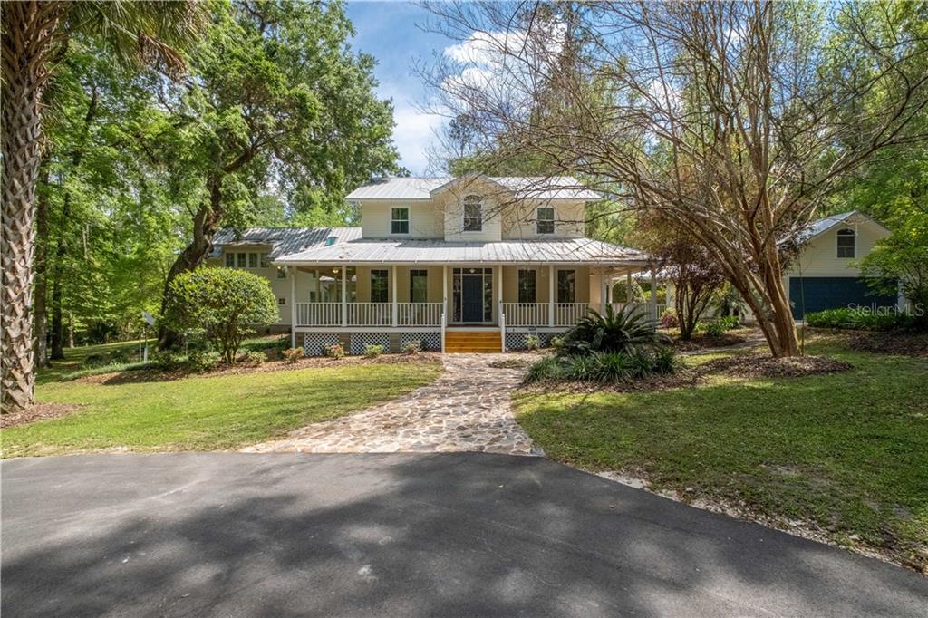 Looking for privacy with the perfect home to relax or entertain? this custom built cracker style home was built by jan frentzen. from the moment you drive in the circle drive you will feel at home with the inviting wrap around porches. 4 bedroom plus study, fireplace and a loft that can be used for an office or gym. 2 separate living and kitchen areas with a downstairs en-suite that would be perfect for a two family situation or a mother-in-law suite with glass door pool views. this spacious home has wood and slate flooring throughout with no carpet. formal dining with french doors to the outdoor porch, updated full kitchens which both have gas cook tops, solid surface counter tops and all appliances. open the doors to the screened in pool with wood decking that blends nature for your enjoyment. lots of glass and windows makes this home light & bright. this home sits on over an 11 wooded acre that offers lots of privacy. hard wired for a generator. convenient to i-75, less than 20 miles from gainesville and it is an easy commute. call to set up a showing. link to the exterior video: https://vimeo.com/529699339Single Family House 4 bedrooms - SIMONTON FARMS
