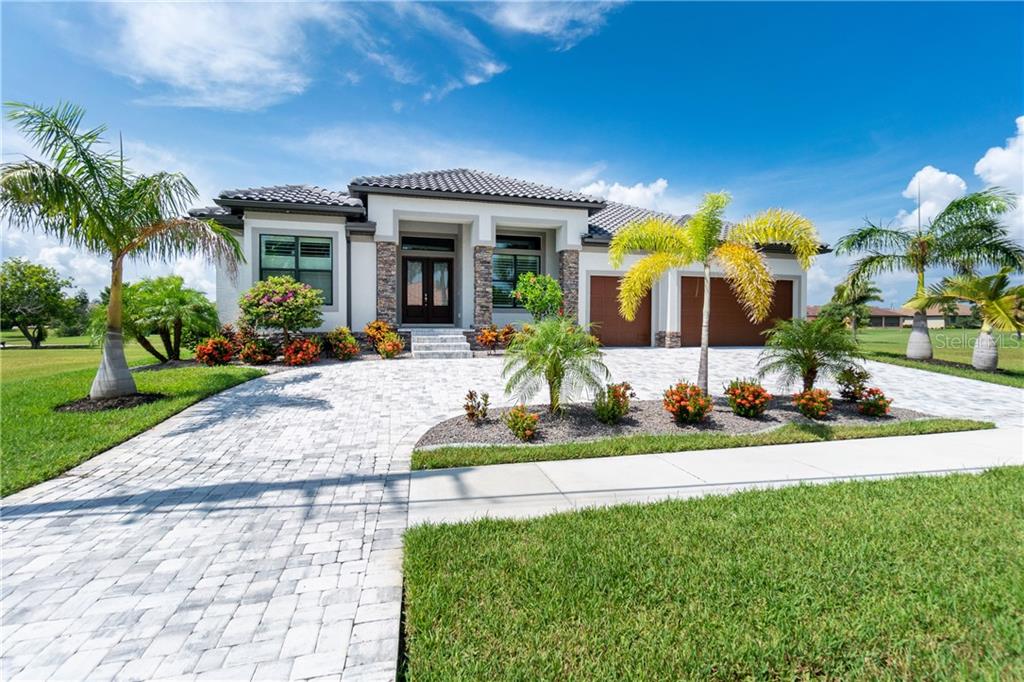 Beautiful high quality designer home less than 2 years old located on the st. andrews south golf course in pgi this 2,608 square foot has 4 bedrooms, 3 baths, and 3 car garage. the southern facing lanai is designed to give plenty of shade to entertain, large heated salt water pool with soothing fountain. electric kevlar blinds for excellent shade and easy storm protection. windows are pgt impact low-e glass. sherwin williams super paint on interior and exterior. extra framed storage in finished garage with epoxy floor coating. interior boasts some of the finest crown molding work in southwest florida. 8 foot doors, rounded drywall corners, large casings and baseboard trim. the kitchen is the centerpiece highlighting floor to ceiling cabinetry with lighting, exquisite crown molding, self-closing drawers, roll-out shelving, extra pantry, commercial grade exhaust hood and extra large island. extra large aquarium window boasts a great view of the lanai and golf course. home is equipped with plenty of closets and storage space. beautiful stacked stone feature wall with fireplace and large t.v. surrounded by floating shelves. floor plan designed to keep guest rooms separate from master bedroom. circular driveway with a 4-post car lift in garage. extra framed storage in finished garage with epoxy floor coating.close to i75/us41 and nearby to fishermen's village, downtown punta gorda shops & restaurants, great boating, fishing, sailing, and more. home is completely spotless and waiting for you. come enjoy the florida lifestyle in this impressive home!Single Family House 4 bedrooms - PUNTA GORDA ISLES SEC 12