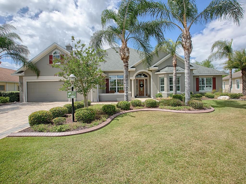This is spectacular 3/3 premier sanibel in the village of bridgeport at miona shores! this beautiful home is water front for complete privacy, and includes an oversized garage with golf cart garage. an expanded lanai features a salt water pool, summer kitchen, and a sensational water view! this stunning home has upgrades throughout, including a solar hot water system, 7" crown moulding, upgraded flooring and plantation shutters! the kitchen has rich cherry cabinets and a center island with quartz composite counters. upgraded stainless appliances include a 36" gas range, 4-drawer refrigerator, and custom range hood. the open concept design provides a spacious living room with trey ceiling, custom built-ins, and gas fireplace! an impressive dining room is highlighted by a crystal chandelier! the spacious master bedroom features a trey ceiling and french doors which open to the lanai. the master bath has been redesigned with a unique stacked-stone feature wall and a custom storage closet. dual sink vanities and a huge tiled shower create the perfect spa retreat. the guest area of the home has two spacious bedrooms, (one with convenient office-built-ins) and a guest bath with a granite vanity and a tub/shower combination. the 3-piece pool bath is accessed from the guest bedrooms or the lanai! the summer kitchen has a gas grill, stainless hood, wet bar, and under-counter refrigerator. a new high-efficiency hvac system was installed in 2018! this is an exceptional home with too many upgrades to list!Single Family House 3 bedrooms - THE VILLAGES