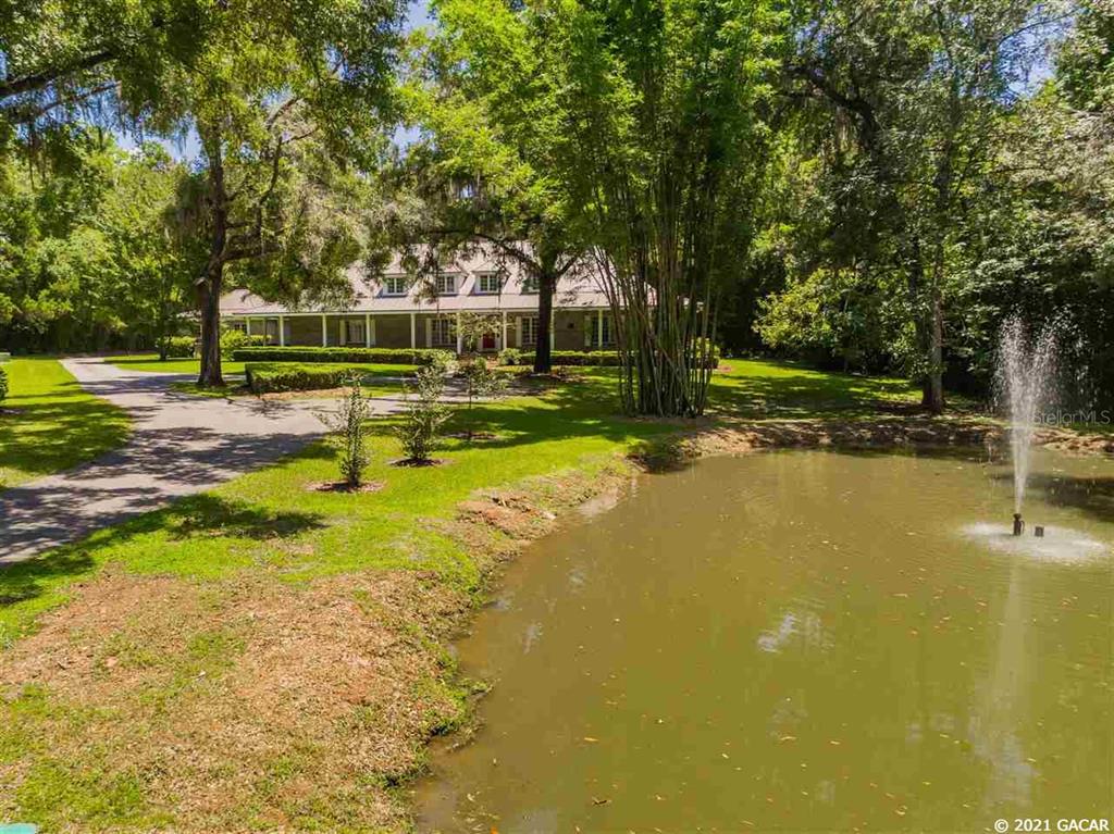 Estate home on gorgeous 6.5 acre property in town. main house boasts 4930 sq ft that includes 3 bedrooms with 4.5 baths and a bonus room upstairs, beautiful tongue and groove ceilings throughout, saltwater pool and spa jets with recently rescreened enclosure, new gas logs in the fireplace, income producing solar panels and stained glass window accents. home has a security system with 8 cameras, metal roof, whole house vacuum and stereo system, leaded glass doors, two pantries, tankless water heater for master bath, outdoor covered kitchen area and tons of floored attic storage. added bonus is the home''s safe room/vault with 6" solid concrete walls and ceiling inside the master closet. property includes a huge rv/boat garage and shop with an apartment and 2 baths. apartment includes 1800 sq ft with 1 bedroom, living room, kitchen and wooden deck. feel secluded in this outdoor lovers paradise with views of your garden, blueberry bushes, citrus trees and giant bamboo in front of your serene koi pond. you will not find another property like this in gainesville! must see to appreciate.Single Family House 5 bedrooms - Creek View