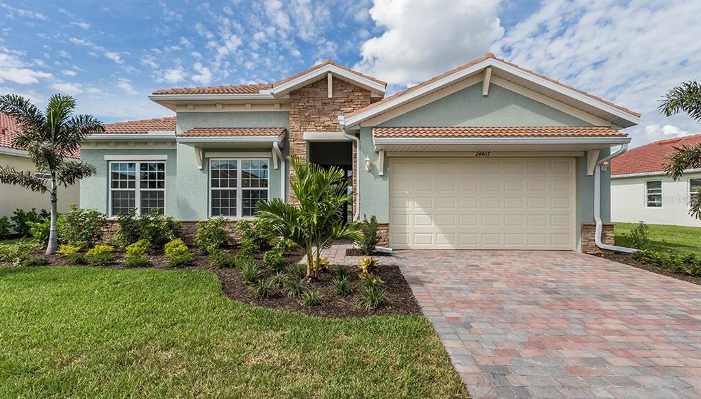 Welcome to your brand new home in river club! this stunning home is our 2214 square foot, 3 bedroom 2.5 bathroom kaden. best waterfront homesite remaining!! a rare opportunity! a move in ready home in river club! included with this home; lvl 2 cherry slate cabinetry, santa cecilia light granite throughout, stainless steel appliances, 8 foot doors, 10 ft trayed ceilings, outdoor kitchen rough in, tile roof, paver driveway and lanai, 18x18 tile and upgraded interior paint. the hoa includes, lawn, landscaping, weeding, fertilizing and mulching. be sure to call or stop by today and learn more about this must see home and community *photographs, colors, features, and sizes are for illustration purposes only and will vary from the homes as built.Single Family House 3 bedrooms - RIVER CLUB