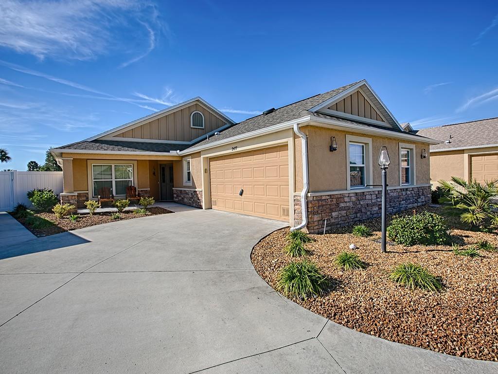 Beautiful 3/2 bungalow courtyard villa with 1851 sq ft and a 2-car garage in antrim dells in the village of collier. the front yard offers nice curb appeal with rock beds, low maintenance landscaping, walkway and porch! upon entering the foyer you'll love the huge great room … living room, dining room and kitchen with vaulted ceilings and stunning diagonal tile flooring. the open kitchen features toffee maple stair-step cabinets with crown molding, pullouts and pot drawers, stainless appliances with a side-by-side refrigerator, dishwasher, mounted microwave and smooth-top electric range, and gorgeous granite counters as well as a breakfast bar island for casual dining and another island for additional work space and storage. the expanded screened lanai is accessible through stack-back sliding glass doors from the living room. the lanai opens into the low maintenance courtyard and patio which has plenty of room for outdoor entertaining! the master bedroom features a tray ceiling and carpet, as well as your en suite bathroom with dual sinks, granite counter, tiled shower, linen closet, separate toilet area, and large walk-in closet. there are two guest rooms and both have carpet. the guest bathroom features granite counter and tub/shower. there is a closet pantry in the hallway. this is a beautiful villa in a fabulous neighborhood close to the pool and a stone’s throw to brownwood town square as well as all the amenities of the villages ... and it's just waiting for you to move right in!!Villa 3 bedrooms - THE VILLAGES