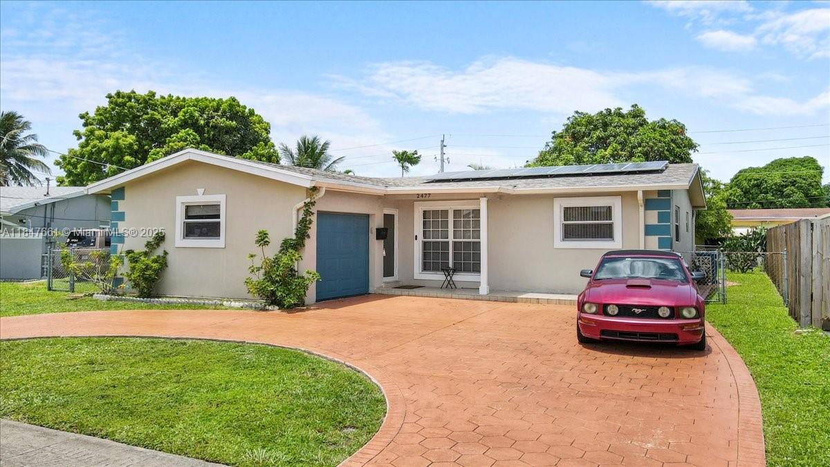 Charming 3-bed, 2-bath single-family home with a flex room, fully fenced yard, and a one car garage! enjoy a spacious open layout, updated kitchen with quartz counters, stainless steel appliances, and a modern tile finish throughout. features include a solar panel system, circular driveway, large patio for entertaining, and storage sheds. freshly painted with newer roof and central a/c. located near highways, shopping, schools, and sawgrass mills mall. move-in ready with space, upgrades, and energy efficiency!Single Family House 3 bedrooms - SUNRISE GOLF VILLAGE SEC
