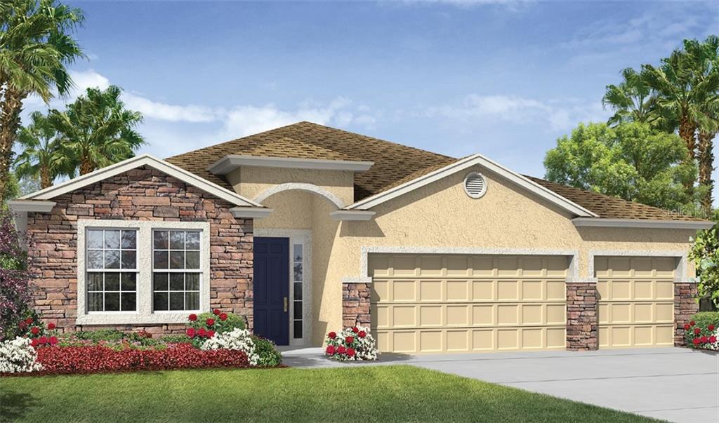 Under construction. welcome to your brand new home!! this is our destin floor plan at 2,368 square feet. great corner lot location with southern exposure in section 23 of the deep creek neighborhood. this stunning floorplan features a large island kitchen, which is open to a very spacious great room and dining area. home comes with 18" tile everywhere except the bedrooms. well-appointed kitchen has granite countertops, 42" upper cabinets, stainless-steel appliances and, even includes a refrigerator. home also includes; a smart home package, a brick paver driveway and lanai, full irrigation system, electric garage door with opener, and full builder's warranty. *pictures, photographs, colors, features, and sizes are for illustration purposes only and will vary from the homes as builtSingle Family House 4 bedrooms - DEEP CREEK SOUTH