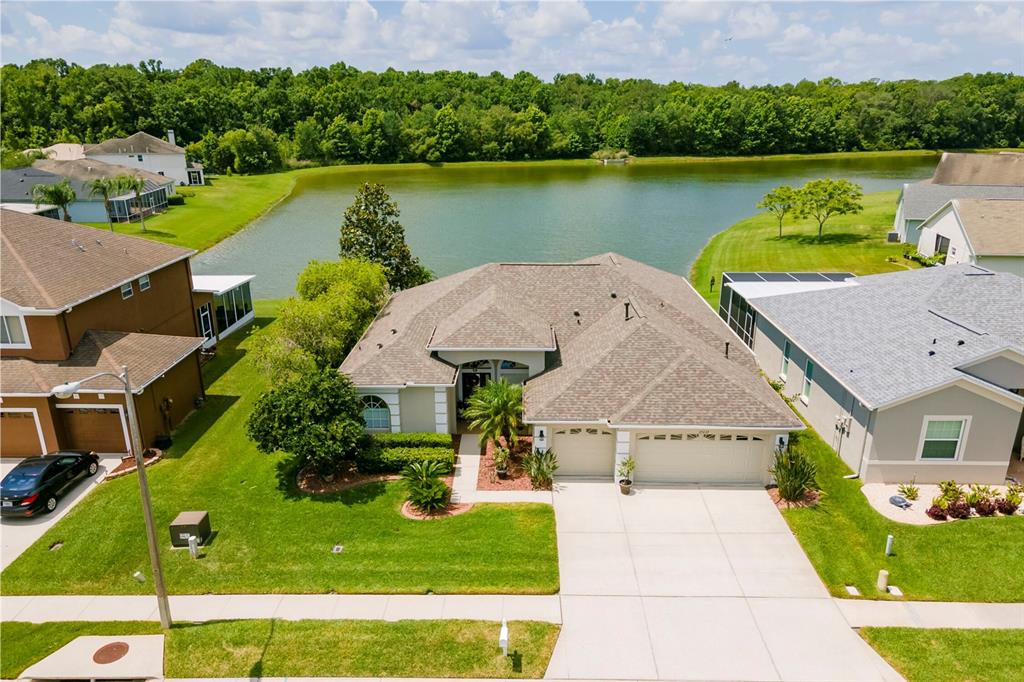Mature landscaping and decorative curbing surround this beautifully updated 4 bed 3 bath 3 car garage 2297 sq. ft. home. located just off wesley chapel blvd., mid-way between the sr-54 and the sr-56 entry ramps to interstate 75, in the highly desired community of grand oaks. truly, one of the most convenient locations in the area! enjoy the beauty of nature from the rear screened in porch over looking a large pond with conservation property on the opposite side. in addition to no rear neighbors, an easement on the southeast side of the property affords an area ranging from 26' to 34' between homes! this is the side of the home where you will find the primary bedroom, measuring approximately 13' x 20' connected to the generously appointed en-suite bath by a short hallway and 2 large walk-in closets. separating the primary suite from the rest of the home is a large, open living/dining area, over looking the rear porch, pond and conservation. the kitchen, with it's own sunny eat-in space joins seamlessly with the family room, for ease of entertainment. positioned by itself, in the rear of the home, and considered to be the 4th bedroom is a lovely guest area with its own private bath and entry way. the front two bedrooms are generously sized and share a hall bath. water proof, wood-look laminate plank flooring has recently been installed throughout the entire living/dining/sleeping areas of this triple split bedroom style home. granite countertops in the kitchen and all three baths. new roof in september 2019! new gas water heater in august 2019. the air conditioning unit, with uv sanitation system has been serviced as recently as april 2021. other than the furnace and hot water heater, all other appliances are currently electric, but hook ups for gas are in place, should you desire to change!Single Family House 4 bedrooms - GRAND OAKS PH 02