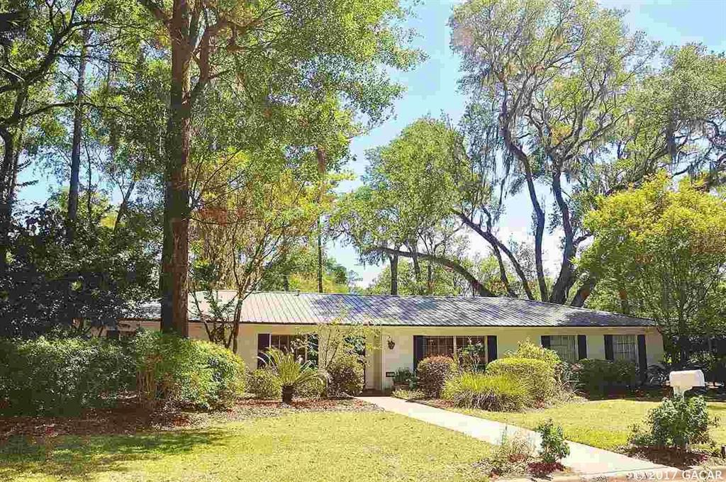 An absolute gem in the heart of gainesville. this 5 bedroom 3.5 bath home sits on a quiet street in the sought-after neighborhood of brywood. the spacious concrete block home features hardwood floors throughout the main living areas and bedrooms with beautiful archways in sitting and dining rooms. custom fireplace with tile surround and built in shelving anchors a large living space. enjoy an updated kitchen with granite and bamboo counters, ss appliances, breakfast nook, and ample storage. designated study offers organization with custom built ins. relax in a spectacular florida room with vaulted ceilings and french doors that frame a great entertaining space on the patio and large backyard. a tiled indoor laundry room leads to an updated half bath. new 26 gauge metal roof system with radiant heat foil and added insulation provide energy efficiency. fantastic location in town allows you to walk/bike to the university of florida, schools, parks, creeks, grocery stores, and much more. pride of ownership truly shines in this home!Single Family House 5 bedrooms - Brywood