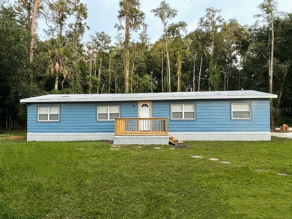 No hoa's, or deed restrictions. beautiful fully renovated manufactured home this 3 bedrooms 2 baths home has 1.13 acres, plenty of space all around the property. located in a quiet neighborhood with a dead end. a deck in the front and back of the house for summer day grilling or winter night bonfires. back of the deck overlooks plenty of greenery for nature lovers! plenty of privacy with no rear neighbors. open floor plan that offers flexible living space with a living/dining room combination and family room. bright and roomy kitchen has wooden cabinets painted pastel blue for an aesthetic look surrounded by like-new stainless steel appliances such as dishwasher, refrigerator, oven, and microwave! brand new elegant granite countertops and marble backsplash have been freshly installed in the kitchen. entire home has been set up with brand new recess lighting for radiant & vivid vibes. master suite has a spacious walk-in closet and a bathroom with ceramic tile floors. both showers in home were renovated with a soft grey ceramic tile and a blue accent to harmonize with the rest of the home. brand new shingled roof + brand new ac system as shown in photos. plenty outlets (24) all around home for tech lovers. city water and septic systems. home comes with a functioning well. located conveniently close to wiregrass mall, the grove, tampa premium outlets, plenty of restaurants and attractions, a-rated schools and i-75 for an easy commute to tampa. don’t miss your chance to own this comfy and modernized 1,356 sq. ft. home . horses welcomeManufactured Home 3 bedrooms - ANGUS VALLEY