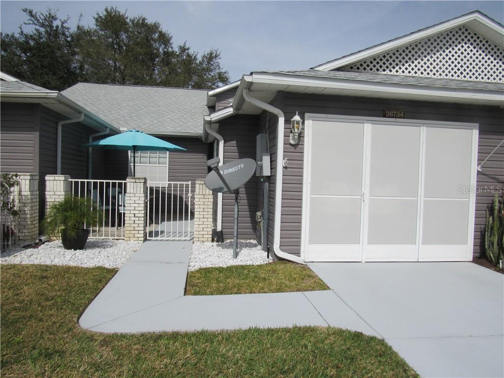 This home looks like it belongs in a magazine---gorgeous!!! great condition and low maintenance living make the perfect duo. sit on your private patio and enjoy your morning coffee. this villa features lots of good lighting with skylights and a solar tube. the kitchen has plenty of cabinet space, a pantry and eat-in area. even while working, you are not secluded, but have a good view through the living and dining room. vaulted ceilings and ledges give the living/dining room a very spacious feeling. then, look on into the pretty florida room and to the back yard. the villa basically has 2 master suites at opposite ends of the house. back master features a walk-in shower, 2 sinks, vanity area and a walk-in closet. front master has 2 closets and bath with tub/shower combo. wall-mounted tv's remain in both bedrooms. there's good storage space in the house and garage. roof 2019. hvac about 3 years old. your villa fee covers lawn care, water for irrigation, termite bond, exterior washing and roof escrow. highland lakes has indoor and outdoor pools, tennis and pickleball. other sports are bocce, shuffleboard, horseshoes, billiards, softball. there is a fitness room and walking track in the large arena. there's bingo every week and many social events, concerts, etc. a great library is here for your enjoyment. there are too many activities and events to mention. free boat and rv parking. a craftsman shop is available for projects. super location near restaurants, banks, groceries, major highways and attractions.Villa 2 bedrooms - HIGHLAND LAKES PH 01B