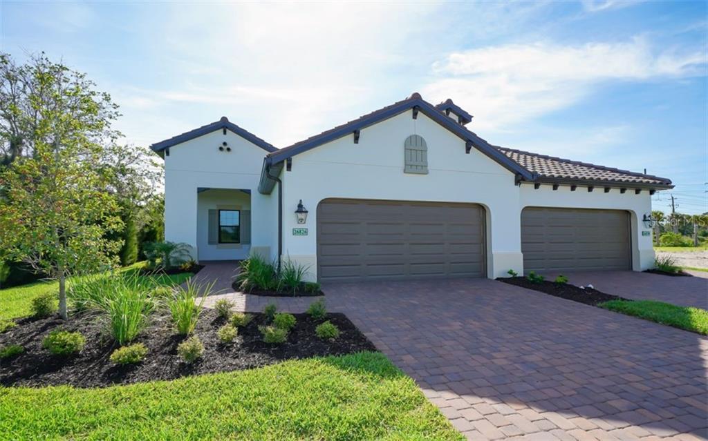 This new construction open-concept & well appointed sandcastle villa home is in the new belize neighborhood. the gourmet kitchen with long island has a view out to the dining nook and adjacent great room, which comes with the option of an elegant octagonal coffered ceiling. french doors off the open area leads into the den or home office. the master suite includes a large walk-in closet and two vanities with walk-in shower and private water closet. a roomy lanai, accessed through the pocket glass sliders in the great room, features an extended lanai. the two additional bedrooms share a full bath at the front of the home. wood look tile is installed throughout most of the home and carpet in the bedrooms. the kitchen features santa cecelia granite with built-ins such as two pot & pan drawers, trash pull-out and a refrigerator enclosure. the neighborhood has a private pool for the belize neighborhood residents or join the resort & tiki bar.Villa 3 bedrooms - BOCA ROYALE