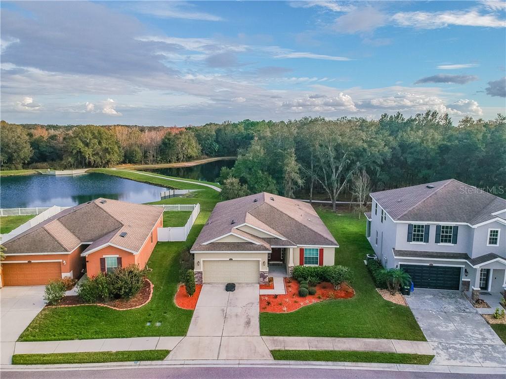 Come see this beautiful split plan 3 bedroom / 2 bathroom home situated on a cul-de-sac street in the neighborhood of whispering woods. this home has no backyard neighbors and you can enjoy the covered lanai looking out into the wooded conservation area, pond, and nature trail. there is a wooden pallet feature wall in the open floorplan living area, ceramic tile flooring in all the main living areas, and new carpeting (2019) in the bedrooms. the kitchen features granite counters, upgraded wooden cabinets, stainless steel appliances, and a new (owned) water softener system that was just installed. the master bedroom overlooks the conservation area with a large walk-in closet and en-suite bath w/ garden tub. all lighting and ceiling fans have been upgraded, extra storage cabinetry in the garage, and the samsung video security system w/ dvr stays. this home is just one block from the community pool and steps away from the playground and nature hiking trail. shopping and restaurants are nearby, and just 10 minutes from i-4, no cdd fees and low hoa.Single Family House 3 bedrooms - WHISPERING WOODS PH 2 & PHA
