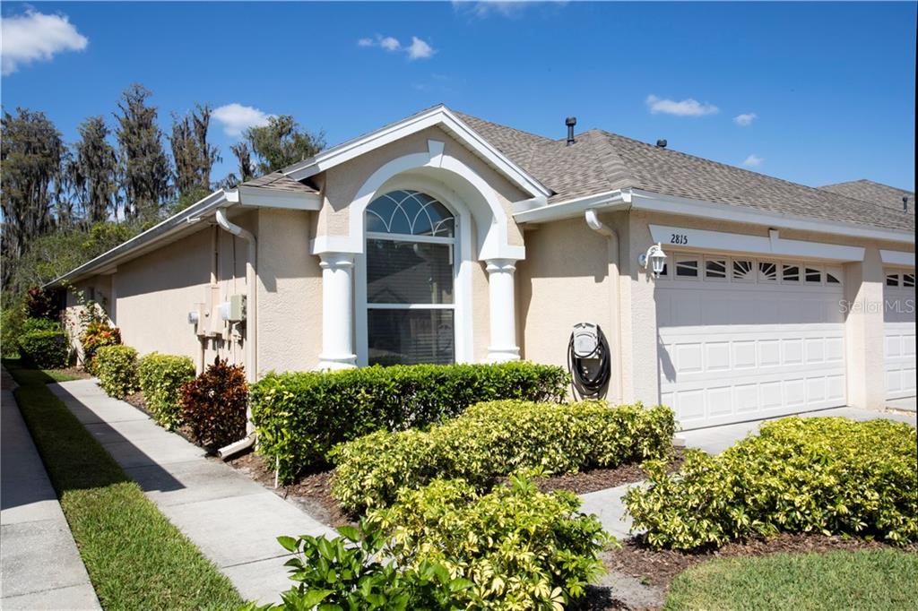 This beautiful maintenance free villa with a conservation view offers 2 bedrooms plus a den, 2 bathrooms and a 2 car garage. the villa is located in the desirable gated tanglewylde subdivision within the oakstead community. brand new roof 2020, a/c 2015, brand new bosch dishwasher 09/2020. this split floor plan offers a large great room with french doors to your paver enclosed lanai overlooking conservation view. to the front of the home you have a separate guest bedroom with a walk-in closet and a full bathroom right down the hall. right off the great room you have a den with french doors perfect for an office, craft room, possible 3rd bedroom or exercise room. towards the back of the home you have the master bedroom with a walk-in closet and a private bathroom with 2 vanities. the kitchen is open to the large dining room with a breakfast bar for extra seating. kitchen amenities include a gas stove, microwave, new dishwasher, fridge, 42" oak cabinets and plenty of counter space. exterior paint, lawn maintenance, irrigation system (reclaimed water) and roof are all included in this maintenance free community. the oakstead community offers amazing resort style amenities, 2 pools, fitness center, basketball courts, volleyball court, tennis courts, covered playground, and a park and nature walking trail. great location with easy access to suncoast parkway, i-75, schools, daycare center, shopping, tampa premium outlets and numerous restaurants. easy 30 minute commute to tampa. schedule your home tour today!Villa 2 bedrooms - OAKSTEAD
