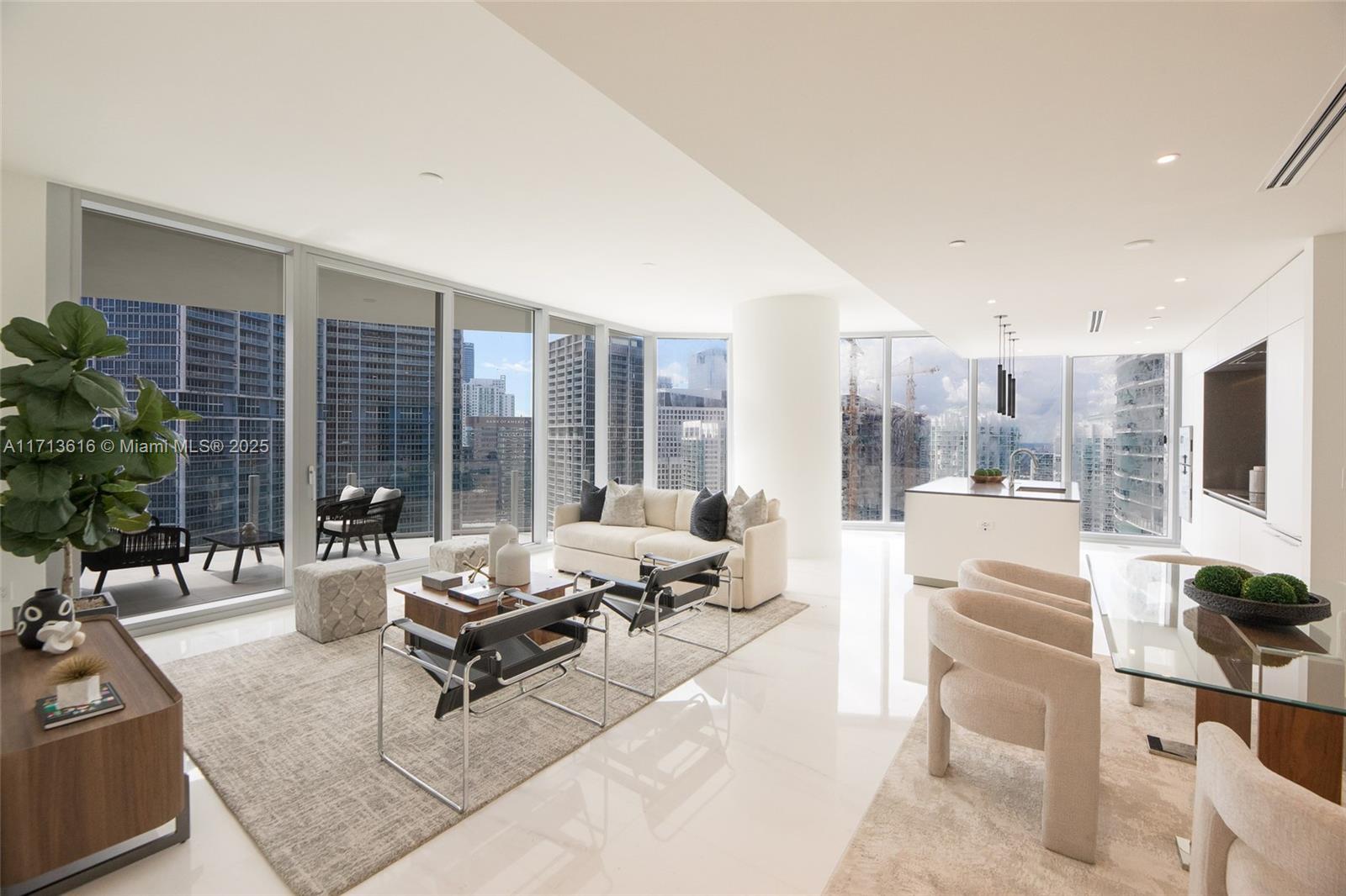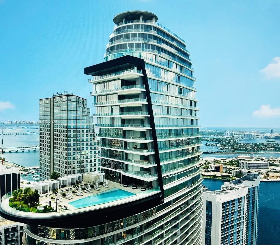 Reduced! this stunning high-floor corner unit offers breathtaking views of the bay, ocean, and city skyline. it features a private elevator that opens directly into your own foyer. the residence boasts 10-foot ceilings, 3 spacious bedrooms. desirable floor plan includes 2 full bathrooms and a powder room. the home is bathed in natural light, with floor to ceiling, impact resistant, soundproof windows throughout. premium gaggenau appliances, sleek german-engineered white cabinetry, and elegant white marble floors imported from greece elevate the space. with over 42,000 sqft of resort-style amenities, this residence exudes luxury in every detail. contact the listing agent for a private tour.Condo Apartment 3 bedrooms - Aston Martin