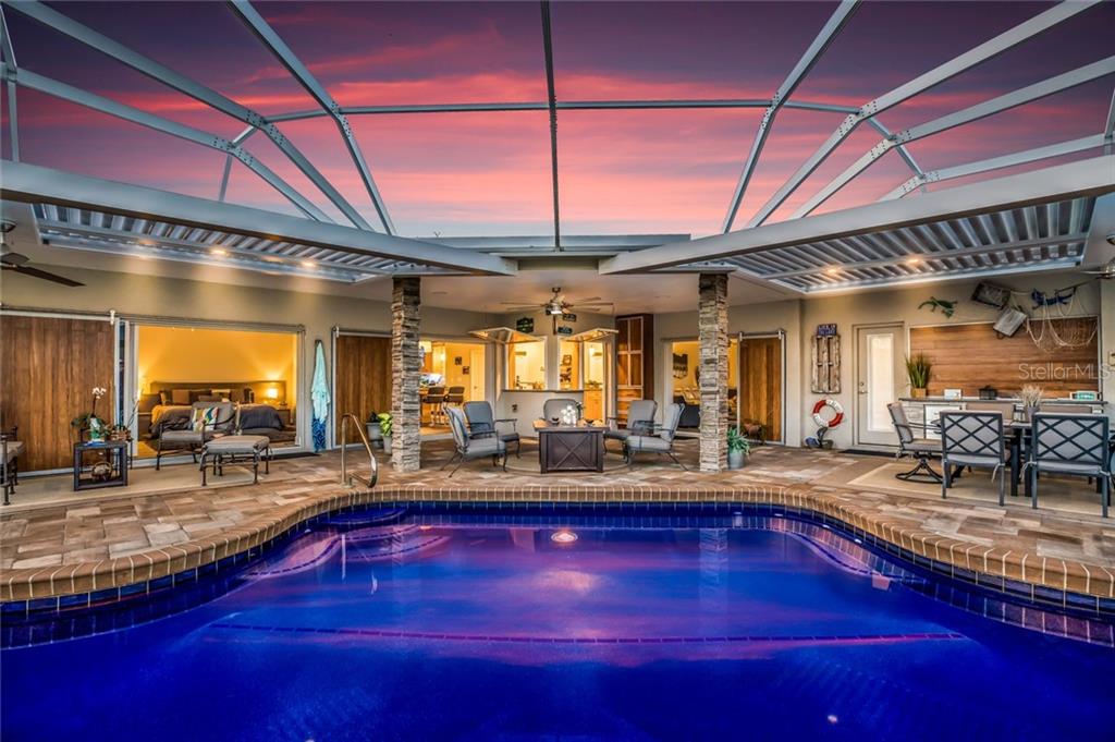 Entertaining is elevated to a new level in this completely renovated, and brilliantly redesigned, custom pool home featuring an open greatroom floorplan, stunning gourmet kitchen and a warm contemporary ambiance. on a half-acre lot behind the gates of river wilderness in parrish, this unexpected find is impressive both inside and out. the interior features high-end finishes and exceptional attention to detail with a casual flair for every day enjoyment. centered by a huge granite island, with seating for six, the gourmet kitchen with its unique cedar ceiling and hand-crafted solid maple cabinetry. a chef’s delight, it features an induction cooktop, double-drawer dishwasher and wine cooler. an adjacent bar offers comfortable seating to enjoy views of the pool, lanai and golf course through custom windows that truly bring the outdoors in! extended from the lanai, a commercial grade “rain sensing” pergolas provide coverage for seating and protection from the elements. the heated salt water pool has a lane for swimming laps and a shallow area for simply lounging and enjoying serene sweeping views of the manicured golf course. private owners retreat has an adjoining study/home office and large dressing area with walk-in closets and separate tub/ shower. on the opposite side of the house the separate guest wing offers two additional bedrooms and a shared bath. the home features a three-car garage and circular drive for additional parking. your search for an on-trend and unique property can happily end here!Single Family House 3 bedrooms - RIVER WILDERNESS PH I