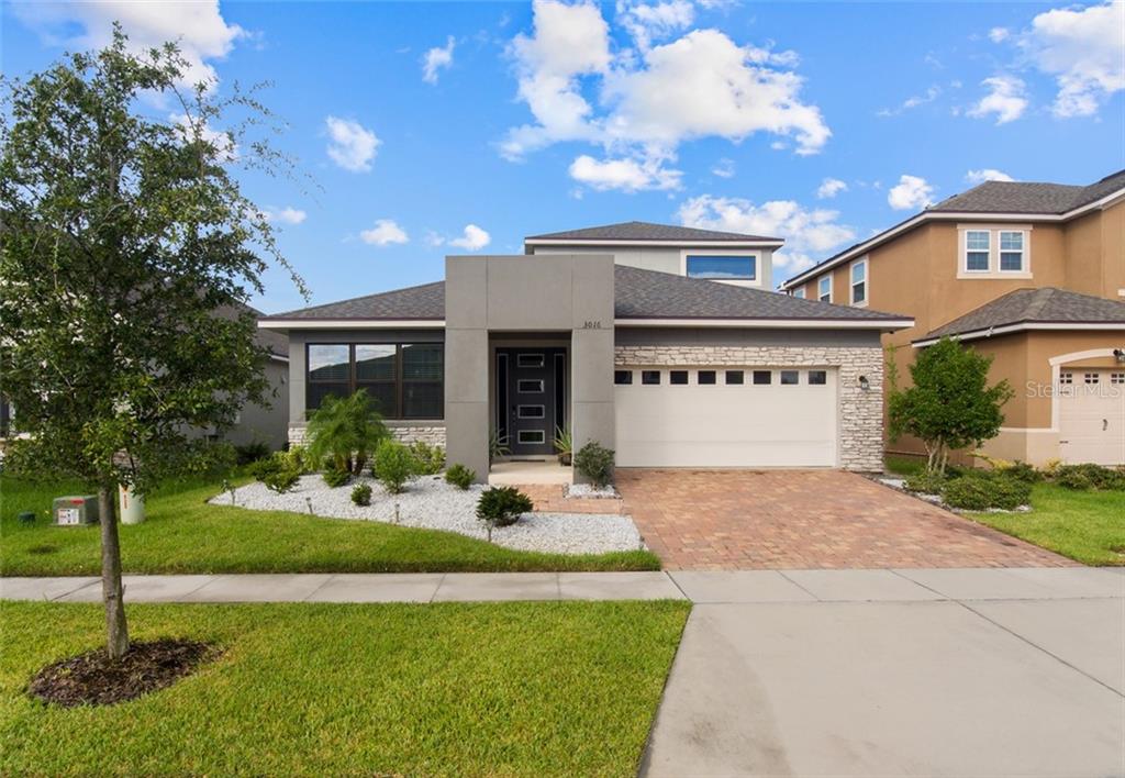 Welcome home to this beautiful modern paradise. upon your very first step inside you will sigh and be swept away with that feeling we call ‘home’. this immaculate and impeccable open concept just flows! on the left you can chill and relax in your flex room first thing in the morning with a glass of your favorite fresh fruit juice or cup 'a java prepared adjacent in your wet bar then simply gaze through the plentiful windows with gratitude to appreciate the florida sun. begin your day walking through your breathtaking gourmet kitchen as you prepare your breakfast to kick start your to-do list and savor your delicious concoction at your natural stone island counter. across to the right of your gourmet kitchen through a wide hallway is a family and guest bathroom (1) and three bedrooms which could be your exercise room and your home office or a personal yoga & meditation sanctuary, plus a room with an en-suite full bathroom with shower (2) that perhaps would be your guest room. further down from your gourmet kitchen in this rather open concept floor plan is where you can unwind after your day in a very comfortable spacious gathering area to watch television or read a book, get on a zoom call and hang out with your loved ones. to the left at the end of the family area is almost a secret hallway leading to the double door master suite with a large en-suite bathroom with garden tub (3), long vanity with double sinks and separate shower. of course you cannot forget your large walk in closet with ample space to hang your seasonal fashions. as the beautiful fall weather starts to unfold you may want to enjoy your favorite teas and some sweet delicacies like scrumptious cookies or, scones with clotted cream if you may, on your patio area which is directly across and outside your gathering area to watch the sunset. alright so if you’re either spoiled or rather not tend to too much lawn maintenance this home is perfect because it has all that your heart desires without worrying about all the yard upkeep yet enough greenery to make it feel like home. right from the modern elevation plan to the natural rocks in your front yard, you know locking up on last minute notice for a vacation or stay-cation is a breeze with no worries.you may be too tied up though to travel as upstairs on the second floor is a extra large loft suitable for a home theater or game room which you will find yourself cozied up in your comfy sofas and most likely hanging out with family, friends or solo savoring your much needed beverage and watching your favorite shows most of the time and not wanting to budge downstairs. for your convenience your full bathroom (4) is right there. not to forget that only a short walk away you will discover your absolutely stunning large resort style resident’s pool for a plunge to cool off overlooking the breathtaking lake perhaps after a good sweat in the fitness center. this will keep you busy enough that you’ll think you’re already on a vacation living in paradise and close to the theme parks like disney world, universal studios and sea world for a local getaway. orlando int'l airport is only 18 miles away. how you are going to find time to ‘work’ living in this paradise within a private gated community is the question only you can answer. schedule a tour today and see for yourself. all furniture is available if you love it (additional and optional).copy and paste to your web browser; https://vimeo.com/459333693Single Family House 4 bedrooms - TAPESTRY PH 2