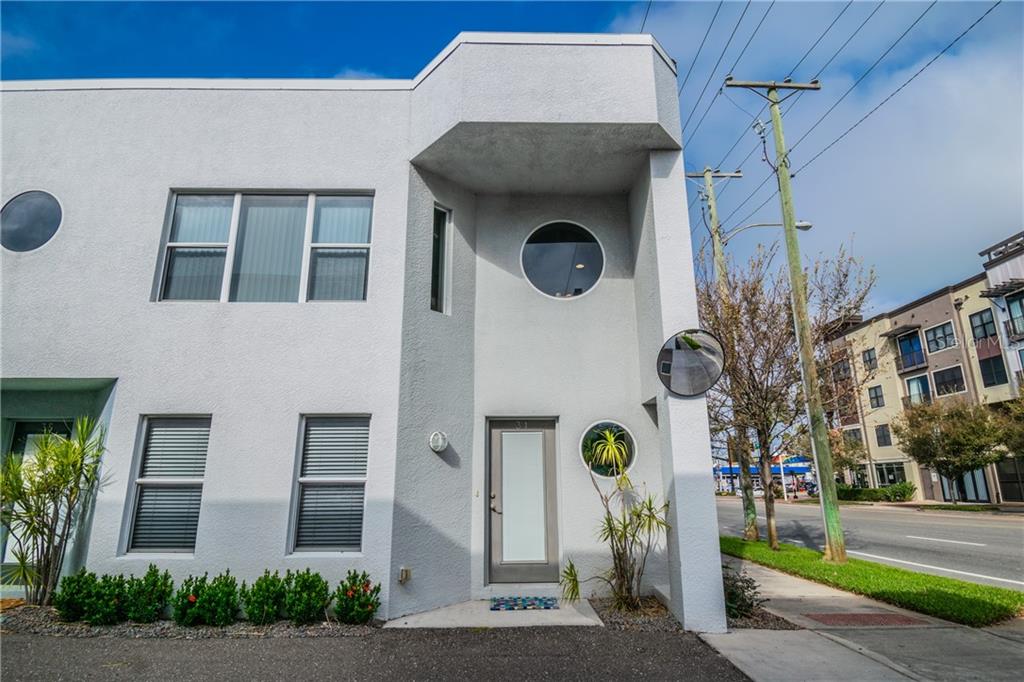 Contemporary end-unit townhome + balcony! prime location, just across the street from tropicana field! great opportunity to own a 1,298 sf, 2bed/2bath + oversized, 2-car private parking garage in the edge district of downtown st. pete. on the 1st level, enjoy a bedroom with walk-in closet, a full bathroom & under-stairs storage. this bedroom could also be a perfect office or easily converted to a second bedroom. the 2nd level features an open floor plan, combining family room & kitchen. the kitchen features beautiful cabinetry with an abundance of counter space, breakfast bar & stainless-steel appliances, gas range & hood. enjoy this great corner location which offers large windows, as well as plenty of natural sunlight. the living room offers a corner inlet with a custom round window with view to tropicana field. the master bedroom with walk-in closet has a separate entrance to the master bathroom. beautiful, new porcelain wood-look tile flooring throughout the 2nd level. additional features: concrete block, tankless gas water heater, low hoa fee which includes cable & trash, recessed can lighting on both levels, newly painted interior. located in walking distance to tropicana field, central ave trolley, multiple major hospitals, usf st. pete, downtown st. pete entertainment, with easy access to i-275 and of course our world-famous gulf beaches!Townhouse 2 bedrooms - CENTRAL 16TH URBAN HOMES