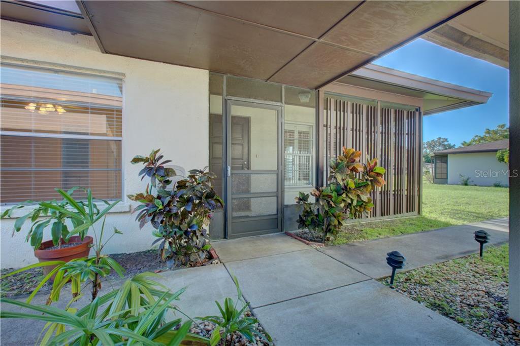 This beautiful villa is made for easy living. you will know you have found someplace special when you walk in the front door and are greeted by expansive wood-like laminate floors and custom plantation shutters accenting the windows. you will enjoy cooking in this upgraded easy to maintain kitchen with a pass-through for easy service to serve dinner to guests. easily organize the household at the desk located in the kitchen. take advantage your eastern view 4-season lanai with its newly installed tinted vinyl windows over the new screening providing the warmth of the rising sun in those chilly winter mornings. retire at the end of a busy day to the master featuring a large closet and an updated en-suite bathroom with tiled shower. your second bedroom can be used as a den and also provides a lot of storage. this home includes its own laundry and covered parking adjacent to the property. ramblewood offers a community clubhouse, fitness center, 3 pools, playground, shuffleboard, tennis courts, and a dog run. ramblewood is a gated community minutes from downtown sarasota, a short walk to the orioles spring training facility, utc mall, world class beaches and top-rated hospitals and medical offices.Villa 2 bedrooms - RAMBLEWOOD ACRES