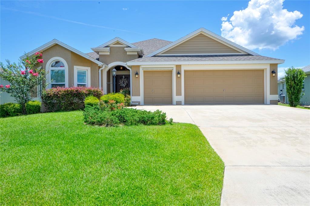Village of pine hills, expanded iris model built in 2017........3 bedrooms, 2.5 baths with 2 car garage plus golf cart garage all within a short walk or golf cart ride to belle glade golf & country club, pine hills community pool, atlas dog park, the wiechens preserve & boardwalk and much more!! you enter the home via a keyless entry to a 10x10 foyer with a custom chandelier. the open floor plan living room and dining room with vaulted ceiling lead to the kitchen with island breakfast bar with sink and breakfast nook. the kitchen with quartz countertops has deep stainless 50/50 sinks, goose-neck faucet with retractable sprayer, base cabinets with pullouts, hide-away garbage cabinet and stainless appliances which include electric flat topped cooktop with stainless hood vent and a pot filling station you will come to really appreciate. there is under cabinet lighting, a corner lazy susan cabinet and a wine bar cabinet with wine rack. the pocket door entry guest wing has a front bedroom with a bay window and plantation shutters, and the 3rd bedroom has a built in desk system, murphy bed, and expanded custom window (5x4.4) with plantation shutters and a bay window bump-out. the owners en-suite with its tray ceiling and custom chandelier also has an expanded custom window (4.5x5) plantations shutters and bay window bump-out. the en-suite bath has a large 7x14 walk-in closet, granite vanity with 2 sinks, linen closet and vaulted ceiling. the walk-in roman shower with tile walls has a built in soap caddy, corner bench seat and glass block window. the covered screened lanai has a magnificent built in electric fireplace , ceiling fans, roll-down sunshades and is plumbed for an outdoor kitchen. there is a half-bath off the lanai with granite vanity, single sink and commode. an outdoor shower can be installed in the corner nook along the back wall of the house. this is an amazing home in a fantastic location... buyer to verify all information and measurements are approximate.Single Family House 3 bedrooms - THE VILLAGES