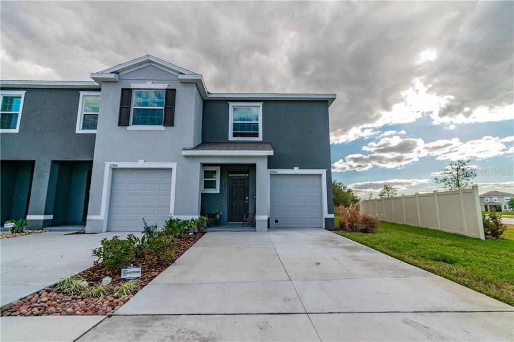 Corner unit all concrete block townhome on conservation with beautiful upgrades. make it yours for the new year! the first floor offers an open concept. the large kitchen connects with the dining area and family room. downstairs flooring was upgraded to a flooret modin, gorgeous and durable, luxury vinyl hardcore plank. please open the gorgeous barn door to the pantry and be surprised. not only it is huge but also has a beautiful cement tile that matches the one in the island. the family room overlooks the covered lanai with clear view screen for clearer view of the large backyard. you can't even tell the screen is there! these owners absolutely love their outdoor space. it is peaceful and big enough for the whole family to enjoy with conservation views. downstairs there is also a powder room for convenience of guests. all appliances convey. upstairs, the owner’s ensite, two extra bedrooms, full bathroom, and laundry. upstairs there is a loft that you can convert into office space, playroom or reading room. make use of your creativity for this bonus space. water views from both 2 extra bedrooms and loft! the car garage fits one car, but the driveway is huge. parking spaces right in front of the unit too! wesley chapel has become one the best areas to live in the tampa bay area. entertainment, shops, and a rated schools. this home offers a bonus, being located just across the new union park charter academy. low hoa fee and wonderful amenities available in union park. ultra fi, dog parks, trails, two pools including a lap pool and fitness center. this unit has been extremely well maintained and in fact, it’s better than new! *** realtors please read realtor remarks.Townhouse 3 bedrooms - UNION PARK