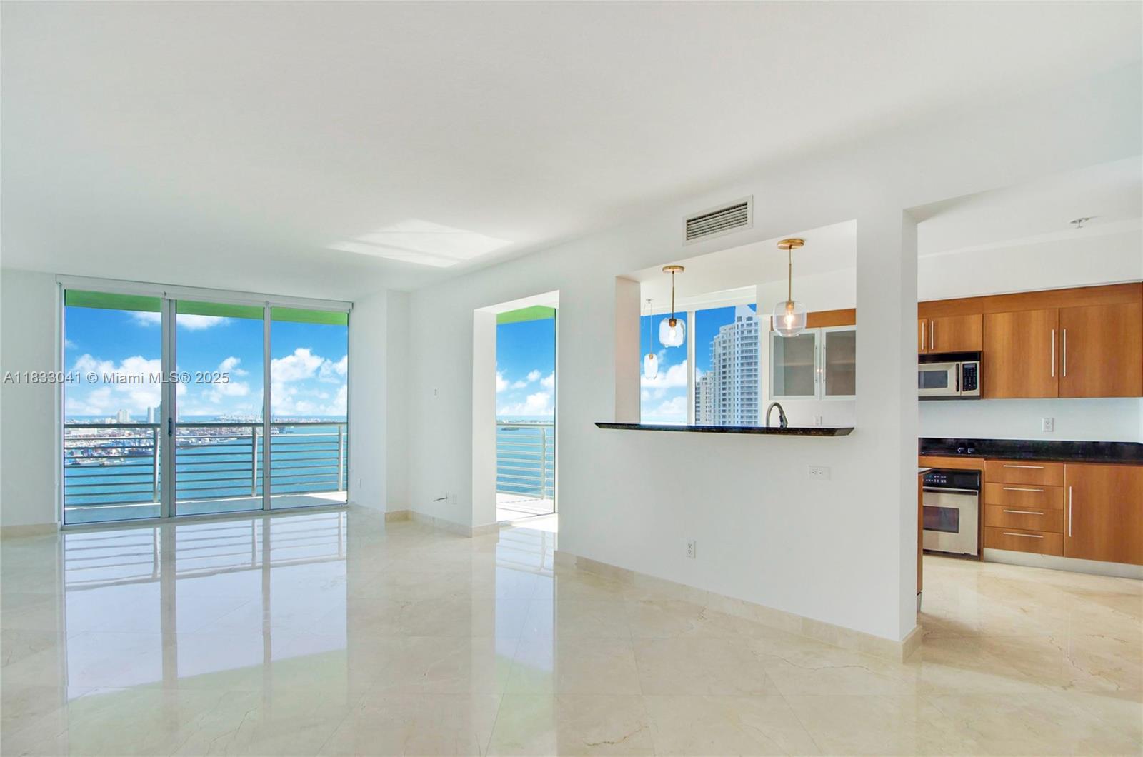 Remodeled 3bed/2bath with breathtaking unobstructed water views from every room, wraparound balcony, ss appliances, granite countertop & 1 assigned parking space on 3rd floor! second bedroom also opens to the living room with double doors. marble floors in common areas including balcony and also in the 2nd bedroom & vinyl floors in other rooms. open kitchen with breakfast area, modern bathrooms & built-in walk-in closets. amazing location, near whole foods, bayfront park, arena & brickell. close to the i-95 entrance! balcony ceiling is now white.Condo Apartment 3 bedrooms - ONE MIAMI EAST CONDO