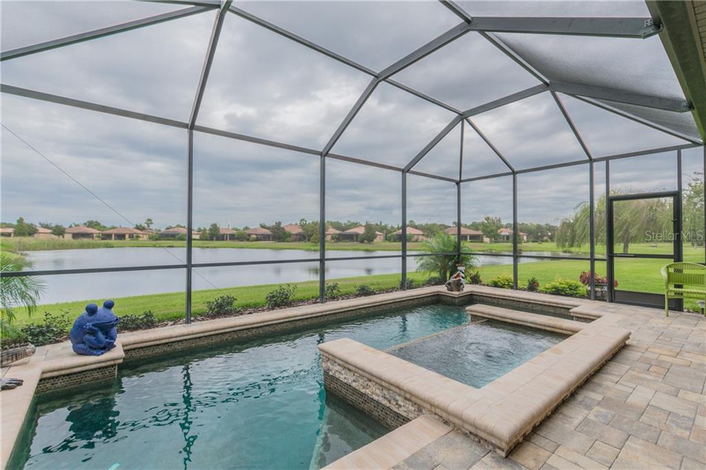 Price reduced! pond view! pool home! pet friendly! premier 55 and older community of southshore falls. beautiful laguna floor plan featuring 3 bedrooms, 2 bathrooms, a den, dining room / living room combination and family room off the kitchen. tile floors on the diagonal throughout except the bedrooms and 10' high ceilings give an elegant look. light and bright with recessed lights in every room. enter through your covered and screened entry into the foyer and notice the view right from your front door! formal living room and dining room are open for your large family gatherings. off to your right are the second and third bedrooms and bathroom for your guests. den has double doors for privacy. kitchen is open to the family room with a gorgeous view of the pond and pool. it features granite counters, raised breakfast bar, pineapple pendant lights, newer appliances, closet pantry and nook for a cozier eating space. the master bedroom is large enough for your biggest furniture with view of the pond. the spa like master bathroom has his and hers vanities with granite counters. relax and enjoy the sunny florida weather and relaxing pond view beside your gorgeous heated pool and spa. newly pavered lanai, heater and resurfaced salt water pool and spa. you'll love living in southshore falls with its wellspring club featuring resistance pool, large heated community pool, hot tub, fitness center, pickle ball, putting green and lots of planned activities and clubs. call for your private showing!Single Family House 3 bedrooms - SOUTHSHORE FALLS A-2 PH 1