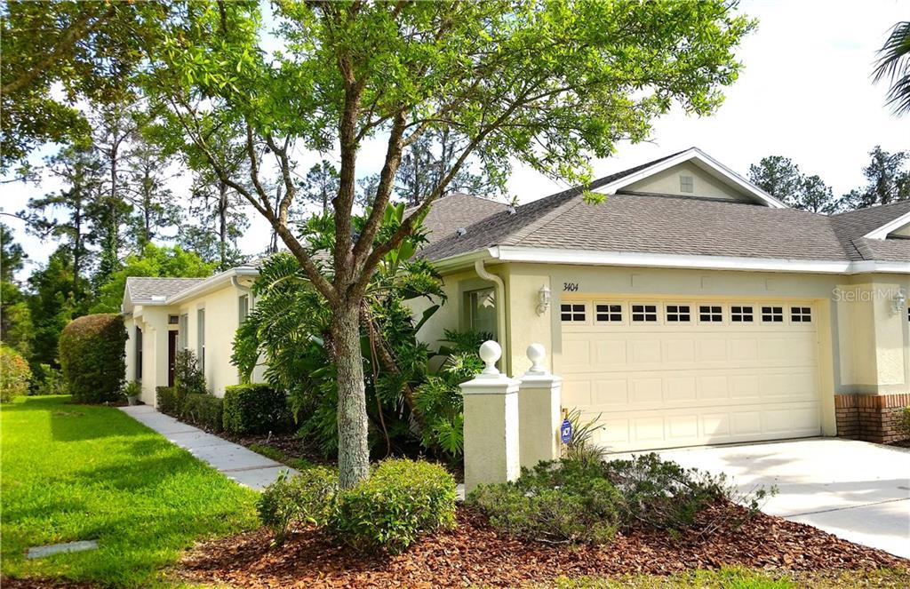 All one story, one of biggest units with private conservation and pond view! - located in the beautiful gated and maintenance free community of the villa at willow creek, seven oaks! this 3 bedroom, 2 full bath, 2 car garage home includes many upgraded features - real hardwood floor in living/great room, new ceiling fans, and new carpet! enjoy the bright and open floor plan with a nice kitchen, recessed lighting, breakfast bar and separate dining area. the huge master suite with decorative tray ceiling includes a walk in closet and a seperate sitting area looking out the peaceful pond/conservation nature setting! the master bathroom features dual vanities, walk in shower separate garden tub. plus it has a laundry room with washer and dryer. this community features its' own (heated) pool only for willow creek residents and even better - seven oaks also offers highly rated schools, walking/biking trails, resort style amenities, - pools with water slide and splash park, covered playground, fitness center, clubhouse with café and movie theatre, and tennis, volleyball, and basketball courts. location, location and location!! enjoy upscale and very convenient wesley chapel’s life style with lots of fine local dinings, shopping malls (the shop at wiregrass and tampa premium outlet mall), wesley chapel florida hospital, literally minutes to i75/i275.Villa 3 bedrooms - SEVEN OAKS