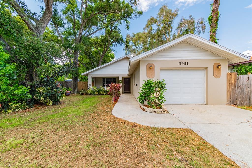 Looking to move to st. pete? located a block away from the 15-acre wilderness area of jorgensen lake park, this move-in ready, 2 bd/2ba home is one of the newer homes located in this area. built in 1987, this beautiful home has a "cottage" feel with a wide, welcoming front porch, lush landscaping and mature foliage, and spacious living room.. the open kitchen/living concept of the home is warm and inviting. the kitchen boasts beautiful cabinetry, granite countertops, and an island for food prep. the glass tile backsplash and stainless-steel appliances pleasantly catch your eye upon entry. the dining area across from the island bar has plenty of room for seating. the bedrooms are sizeable with ample closet spaces in both. the bathrooms feature newer vanities, modern light fixtures, with newer floor and shower tile. the master bedroom has sliding glass doors leading out to a rear patio. the backyard is large and wraps around to the front of the house on both sides. it’s oversized, single-car garage offers plenty of storage space and features a newer roof installed in 2016. additionally, the hvac system is only 1-year old! nestled in the heart of the st. petersburg area, you will have quick access to a variety of shopping centers and restaurants. best yet... the bustling & scenic views of downtown st. petersburg and its pristine beaches are only minutes away!Single Family House 2 bedrooms - FLORAL VILLA PARK