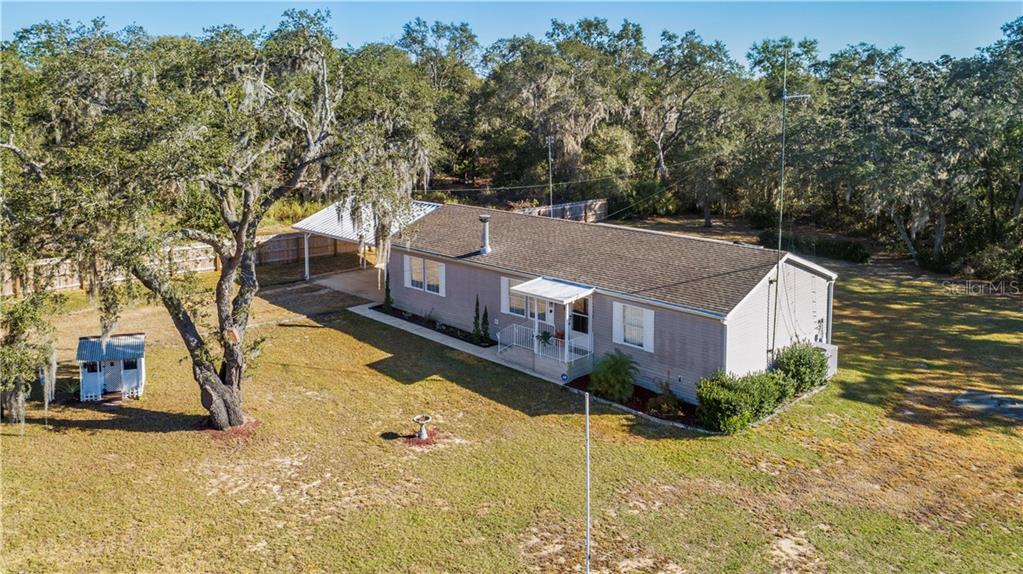 Welcome home! this beautiful manufactured home has been lovingly cared for and sits on just over 1 acre with plenty of room between you and the neighbors. the property features a long private drive, a large storage shed and workshop, a pole barn, and a carport which can accommodate parking for two cars. step into the home and enter a large living room with a cozy fireplace. the floorplan is split with the master to the left, and two bedrooms and a guest bathroom to the right. the kitchen is nicely sized and features a kitchen island with a sink and room for seating. it has plenty of cabinet space, a new dishwasher, and large windows that give you beautiful views and plenty of natural light. a dining nook sits just off of the kitchen and has sliding doors to the screened lanai. enjoy decorative touches throughout the home like laminate wood flooring in the kitchen and crown molding throughout the home. the master suite is private and has a master bath with a corner garden tub and walk-in shower. step out onto the 28x12 screened lanai and enjoy peaceful views with the privacy of no rear neighbors from the spa. enjoy the freedom of no hoa restrictions, and plenty of room to park your boat or rv. also enjoy the tankless hot water heater, vein pump on the well, and new washing machine. this home has something for everyone, and plenty of room to build or expand. if a quiet country setting just minutes from shopping, dining and all the conveniences is what you're looking for, this is the one!Manufactured Home 3 bedrooms - N/A