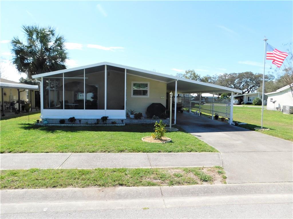Want views from your covered screen front florida room? looking for a pet friendly 55 plus neighborhood with sidewalks? oaks royal 3 is florida living at it's best. own your land in this active 55+ well maintained community with a low hoa fee of $525/year. this beautifully maintained 2br/2ba double wide offers exceptional kitchen, bright dining room, cozy living room, and large screened florida room facing east. home has many upgrades and a desirable open floor plan that flows perfectly throughout. this magnificent home features updated laminate flooring, beautiful kitchen updates including appliances, double pane windows, a/c in 2017, laundry off carport in storage room and the golf cart is included. breakfast bar boasts additional counter space, beautiful appliances, and freshly painted in all rooms. both bedrooms are bright and offer ample space. the master retreat offers step in shower, double vanity, updated fixtures, and large walk-in closet. second bedroom has laminate flooring and walk-in closet. your low annual fees get you access to all the subdivision's amenities which includes access to heated pool, spa, club house and community functions. two pets permitted. this excellent home is conveniently located near restaurants, shopping, and medical facilities. call today to book your showing before this one is gone!Manufactured Home 2 bedrooms - OAKS ROYAL