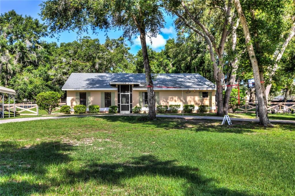 Peaceful and spacious! this amazing lady lake pool home sits on over one acre with a beautiful fenced and cross fenced area for your pets. bring all the toys because there's plenty of space to park the rv or boat. there is also a nice detached workshop and additional storage shed and covered storage area. this would make the perfect home for a business owner that needs to store work equipment. inside features 3 bedrooms and 2 full bathrooms with a large spacious family room that opens to the dining area. you will appreciate the laminate wood flooring and custom upgrades throughout. the kitchen features plenty of storage space with a breakfast bar and closet pantry. the kitchen is conveniently located close to the inside laundry room. there is also space in the kitchen for a breakfast table. the setting and the large spacious yard are really what sets this property apart. there is also a beautiful custom built tree house for loads of fun. bring the pool floats and enjoy hot summer days floating around in your own screen enclosed pool with a peaceful view of the backyard. with a top notch location, this lady lake home is close proximity to the villages and the many restaurants and shopping located right up the road yet you feel peacefulness being out in the country. call today to schedule an appointment to view this spectacular home!Single Family House 3 bedrooms - WELHAN ACRES SUB