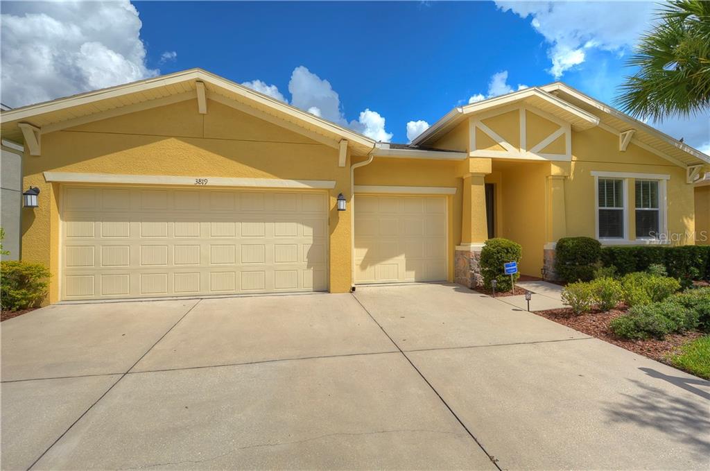 Located in the highly desired gated stonebrier subdivision & situated on a premium lot with beautiful views of golf course and pond. this immaculate home offers a spacious 2,749 heated square feet, 3 bedrooms, 2 full baths and another half bath plus den/office, combination formal living/dining, family room, inside laundry room, and 3-car garage. the open kitchen features rich maple cabinets, granite countertops, tile backsplash, breakfast bar, built-in desk, walk-in pantry, stainless appliances and a generous breakfast nook. the home is bright and airy and the family room sliders lead out to the huge screened lanai lined with pavers overlooking the serene view. the master suite boasts handsome hardwood flooring, an oversized walk in closet and double windows. the master bath has a raised double wood vanity, dual sinks, garden tub, and separate shower. the living area, kitchen, baths, and laundry all have oversized neutral ceramic tile while the secondary bedrooms have neutral carpeting. built in 2009, this like-new home also includes a brick paver entry, mature landscaping, arched doorways, crown molding, ceiling fans,blinds,new water softener, security and sprinkler systems, utility tub in the laundry room, and epoxy flooring in the garage. stonebrier is in a highly sought after school district with amenities that include playgrounds, a community pool with waterslide, clubhouse w/fitness center, community sidewalks, soccer fields and basketball court. come see this lovely home today!Single Family House 3 bedrooms - STONEBRIER PH 3B